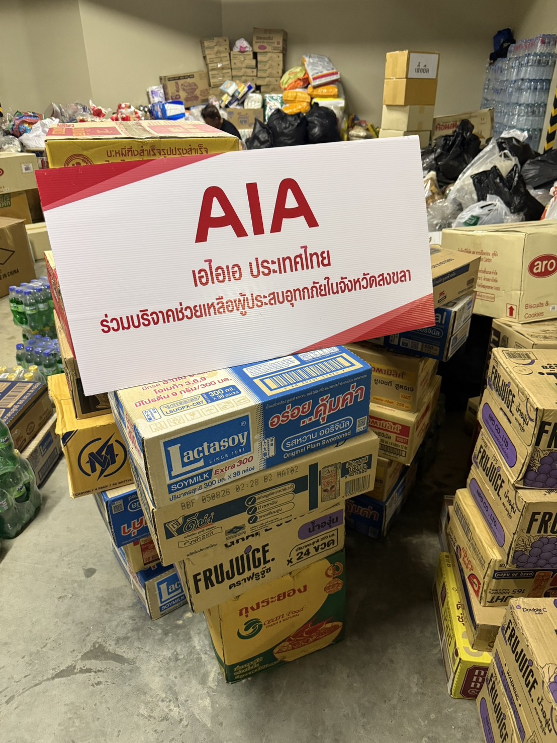 นอกจากนี้ เอไอเอ ประเทศไทย ยังได้ร่วมมอบเงินบริจาคผ่านสมาคมเจ็ตสกีแห่งประประเทศไทย เพื่อนำไปจัดเตรียมอาหาร น้ำดื่ม และสิ่งของจำเป็นเพื่อการอุปโภคบริโภค สำหรับแจกจ่ายให้แก่ผู้ประสบอุทกภัยในอำเภอหาดใหญ่ จังหวัดสงขลา อย่างเร่งด่วนเพื่อบรรเทาความยากลำบากในเบื้องต้น ถือเป็นการตอกย้ำถึงความมุ่งมั่นของเอไอเอ ที่ต้องการส่งความห่วงใยและกำลังใจไปยังทุกครอบครัวในภาคใต้ รวมถึงเจ้าหน้าที่ทุกท่านที่ปฏิบัติงานอย่างทุ่มเทในพื้นที่ โดยเอไอเอ พร้อมอยู่เคียงข้างและสนับสนุนให้คนไทยมีสุขภาพและชีวิตที่ดีขึ้น ตามคำมั่นสัญญา ‘Healthier, Longer, Better Lives’