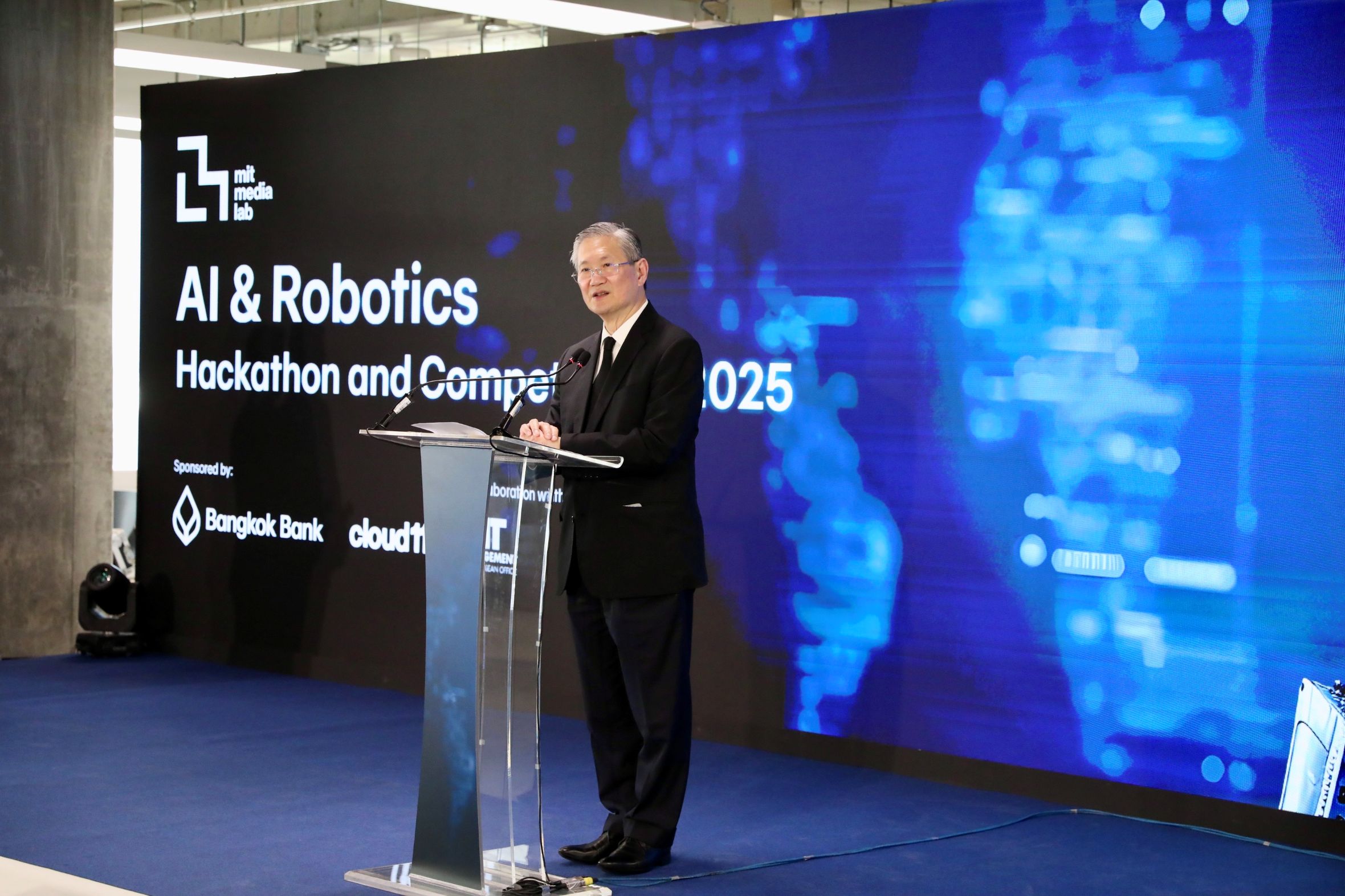 21 ธันวาคม 2568 : ธนาคารกรุงเทพ จำกัด (มหาชน) นำโดย ชาติศิริ โสภณพนิช กรรมการผู้จัดการใหญ่ นายกอบศักดิ์ ภูตระกูล กรรมการรองผู้จัดการใหญ่ ร่วมกับ MIT Media Lab นำโดยศาสตราจารย์โจเซฟ พาราดิโซ ผู้อำนวยการกลุ่มวิจัย Responsive Environments และคณะผู้บริหารโครงการ Cloud 11 เปิดตัวโครงการ “AI & Robotics Hackathon and Competitions 2025” ภายใต้แนวคิด “Building a Better Future for All” มุ่งส่งเสริมการพัฒนาและการประยุกต์ใช้เทคโนโลยีปัญญาประดิษฐ์ (AI) และหุ่นยนต์ เพื่อร่วมแก้ไขโจทย์สำคัญของสังคม ทั้งด้านสุขภาพ การศึกษา และการพัฒนาเมืองอย่างยั่งยืน โดยใช้ประเทศไทยเป็นฐานสำคัญในการเชื่อมโยงเครือข่ายนักวิจัย นักพัฒนา และบุคลากรด้านเทคโนโลยีจากทั้งในประเทศและภูมิภาคอาเซียน