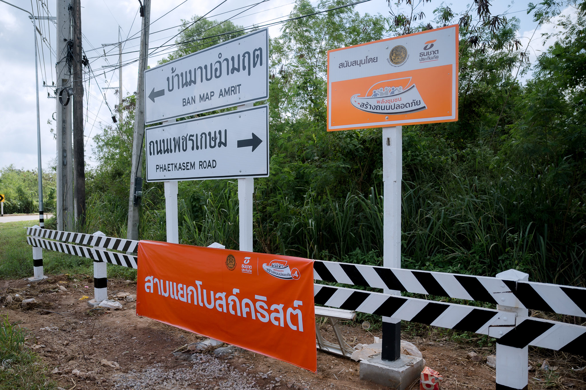 ธนชาตประกันภัย จึงสนับสนุนงบประมาณ จำนวน 200,000 บาท ให้แก่เทศบาลตำบลมาบอำมฤต เพื่อจัดให้มีอุปกรณ์ลดจุดเสี่ยงบนถนน และอาณัติสัญญาณด้านความปลอดภัยทางถนน จำนวนทั้งสิ้น 8 รายการ ประกอบด้วย ไฟกระพริบ, ป้ายแบบ ต.13 (ป้ายเตือนทางแยก), ป้ายแบบ บ.54 (ป้ายบังคับความเร็วขั้นต่ำ) จำนวน 1 ชุด, ไฟกระพริบ, ป้ายแบบ ต.14 (ป้ายเตือนทางแยก) จำนวน 1 ชุด, ไฟกระพริบ, ป้ายแบบ บ.1 (ป้ายบังคับหยุด) จำนวน 1 ชุด, ป้ายบอกทาง แบบ น.2 (2 แผ่นป้าย/ชุด) จำนวน 1 ชุด, ป้ายแบบ ต.63 /ต.66 เตือนแนวทาง (2 แผ่นป้าย/ชุด) จำนวน 3 ชุด, ป้ายแบบ ต.63/ต.66 เตือนแนวทาง แบบพลังงานแสงอาทิตย์ (2 แผ่นป้าย/ชุด) จำนวน 2 ชุด, แผงไม้กั้นถนน จำนวน 12 เมตร, หมุดลูกแก้วสะท้อนแสง พลังงานแสงอาทิตย์ จำนวน 30 ดวง