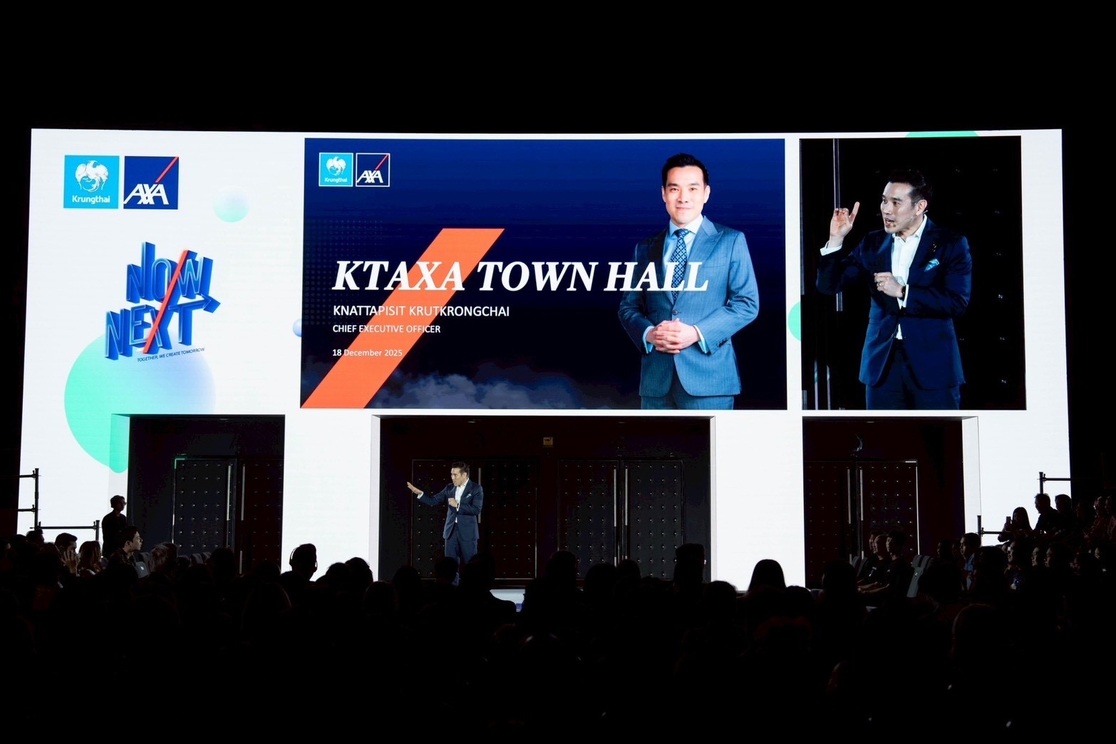 22 ธันวาคม 2568 : บมจ.กรุงไทย-แอกซ่า ประกันชีวิต ส่งท้ายปีอย่างยิ่งใหญ่ จัดงาน NOW/NEXT 2025 Wrap-up Townhall นำโดย คุณณัฐพิสิษฐ์ ครุฑครองชัย ประธานเจ้าหน้าที่บริหาร (จากขวา คนที่ 3 ) พร้อมด้วยคณะผู้บริหารระดับสูง เพื่อเป็นเวทีสะท้อนภาพแห่งความสำเร็จตลอดปี 2025 โดยภายในงานเป็นการสรุปผลดำเนินงานประจำปี ที่เติบโตอย่างแข็งแกร่ง สอดรับกับกลยุทธ์ Bigger and Bolder พร้อมทั้งผู้บริหารระดับสูงยังได้ประกาศกลยุทธ์ให้แก่พนักงาน และสร้างพลังความพร้อมในการก้าวสู่ปี 2026 เพื่อให้บริษัทฯ เติบโตอย่างแข็งแกร่งยิ่งขึ้น