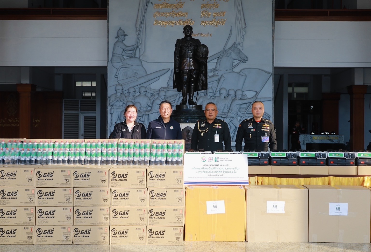 ขณะที่ บริษัท แอตลาส เอ็นเนอยี จำกัด (มหาชน) หรือ ATLAS ได้ร่วมส่งกำลังใจสู่แนวหน้า โดยมอบแก๊สกระป๋องพีที จำนวน 1,800 กระป๋อง พร้อมเตาแก๊สอเนกประสงค์ จำนวน 50 เตา ให้กับกองบัญชาการกองทัพภาคที่ 1 มอบแก๊สกระป๋องพีที จำนวน 3,000 กระป๋อง พร้อมเตาแก๊สอเนกประสงค์ จำนวน 100 เตา ให้กับกองบัญชาการกองทัพภาคที่ 2 ค่ายสุรนารี จังหวัดนครราชสีมา และมอบแก๊สกระป๋องพีที จำนวน 50 ลัง พร้อมเตาแก๊สอเนกประสงค์ จำนวน 50 เตา ให้กับกองบัญชาการกองทัพบก เพื่อนำไปใช้สนับสนุนภารกิจเสริมความมั่นคงของฐานที่มั่นในการปกป้องอธิปไตยของไทย และเตรียมส่งมอบให้กับฐานปฏิบัติการในพื้นที่อื่นๆ ต่อไป