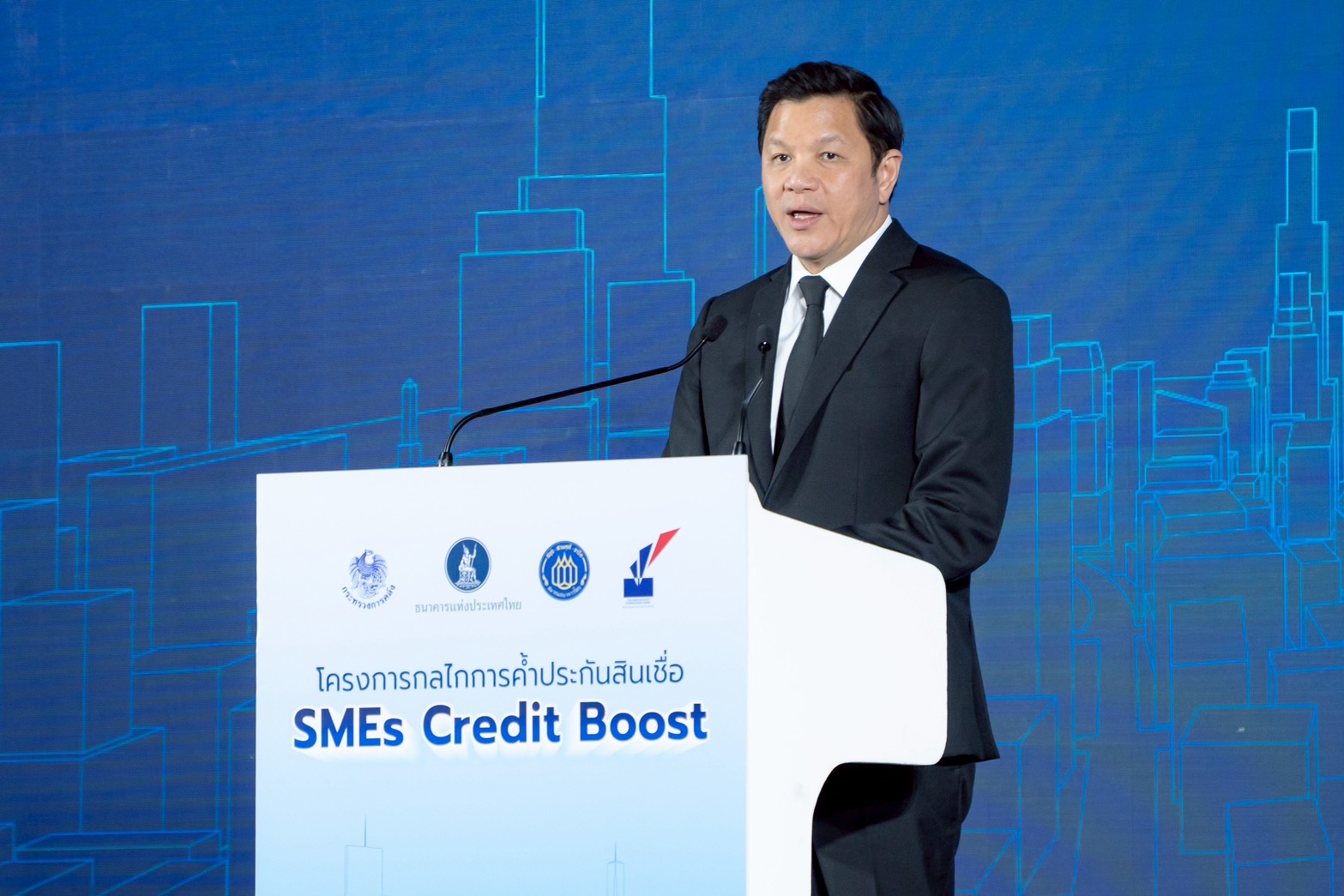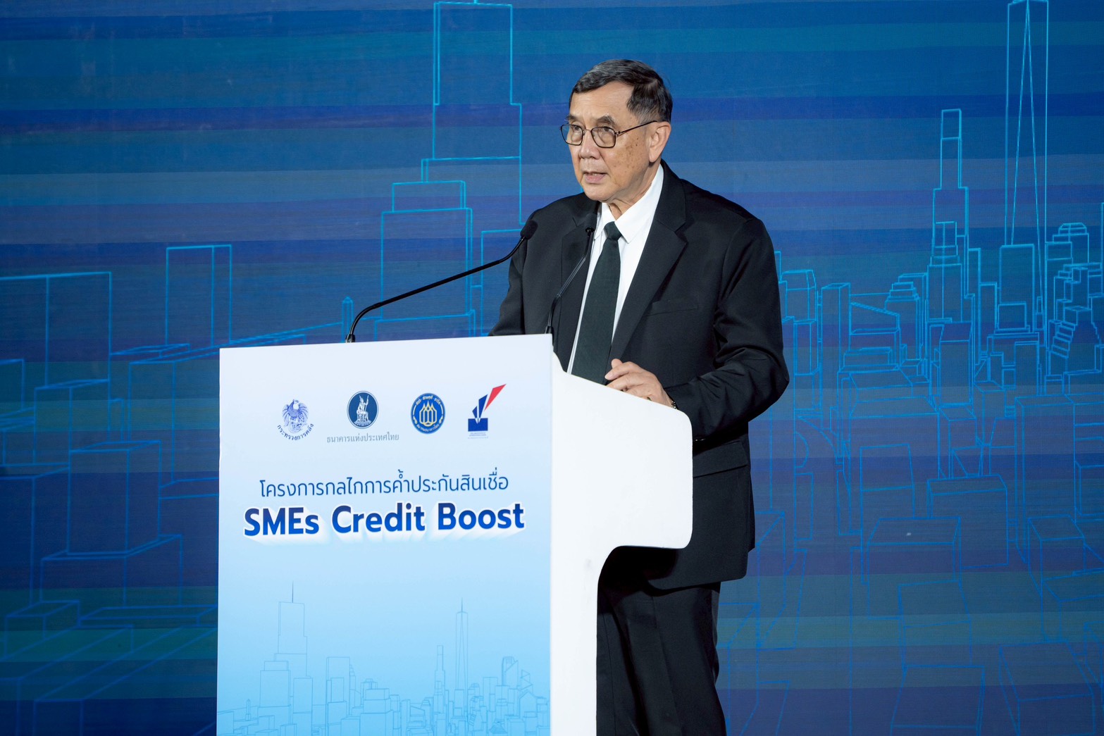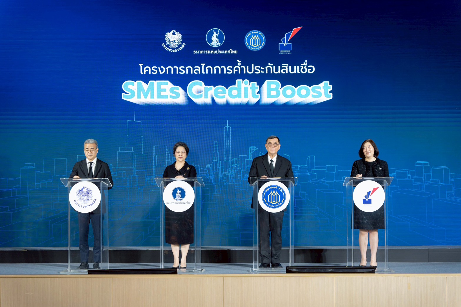 กระทรวงการคลัง ธนาคารแห่งประเทศไทย และกลุ่มธนาคารพาณิชย์ จึงร่วมกันผลักดัน ‘โครงการกลไกการค้ำประกันสินเชื่อ : SMEs Credit Boost’ ที่เป็นกลไกค้ำประกันความเสี่ยงสำหรับ ‘สินเชื่อใหม่’ ที่ธนาคารพาณิชย์ปล่อยให้ธุรกิจกลุ่มเป้าหมาย ครอบคลุม (1) SMEs ในภาคธุรกิจภายใต้โครงการ Reinvent Thailand (เช่น การท่องเที่ยว การแพทย์และสุขภาพ เกษตรและเกษตรแปรรูป ยานยนต์และชิ้นส่วน อิเล็กทรอนิกส์อัจฉริยะ และการค้า รวมถึงธุรกิจที่อยู่ในห่วงโซ่อุปทาน (supply chain) ของอุตสาหกรรมข้างต้น) และโลจิสติกส์ และ (2) SMEs และธุรกิจรายใหญ่ ที่มีแผนว่าจะนำสินเชื่อที่ได้รับไปใช้ยกระดับศักยภาพธุรกิจหรือพัฒนาความสามารถในการแข่งขัน (เช่น ด้านดิจิทัลเทคโนโลยี การดำเนินธุรกิจที่เป็นมิตรกับสิ่งแวดล้อม และนวัตกรรมแห่งโลกอนาคต) หรือเสริมสร้างมูลค่าเพิ่ม (value added) ต่อเศรษฐกิจไทย