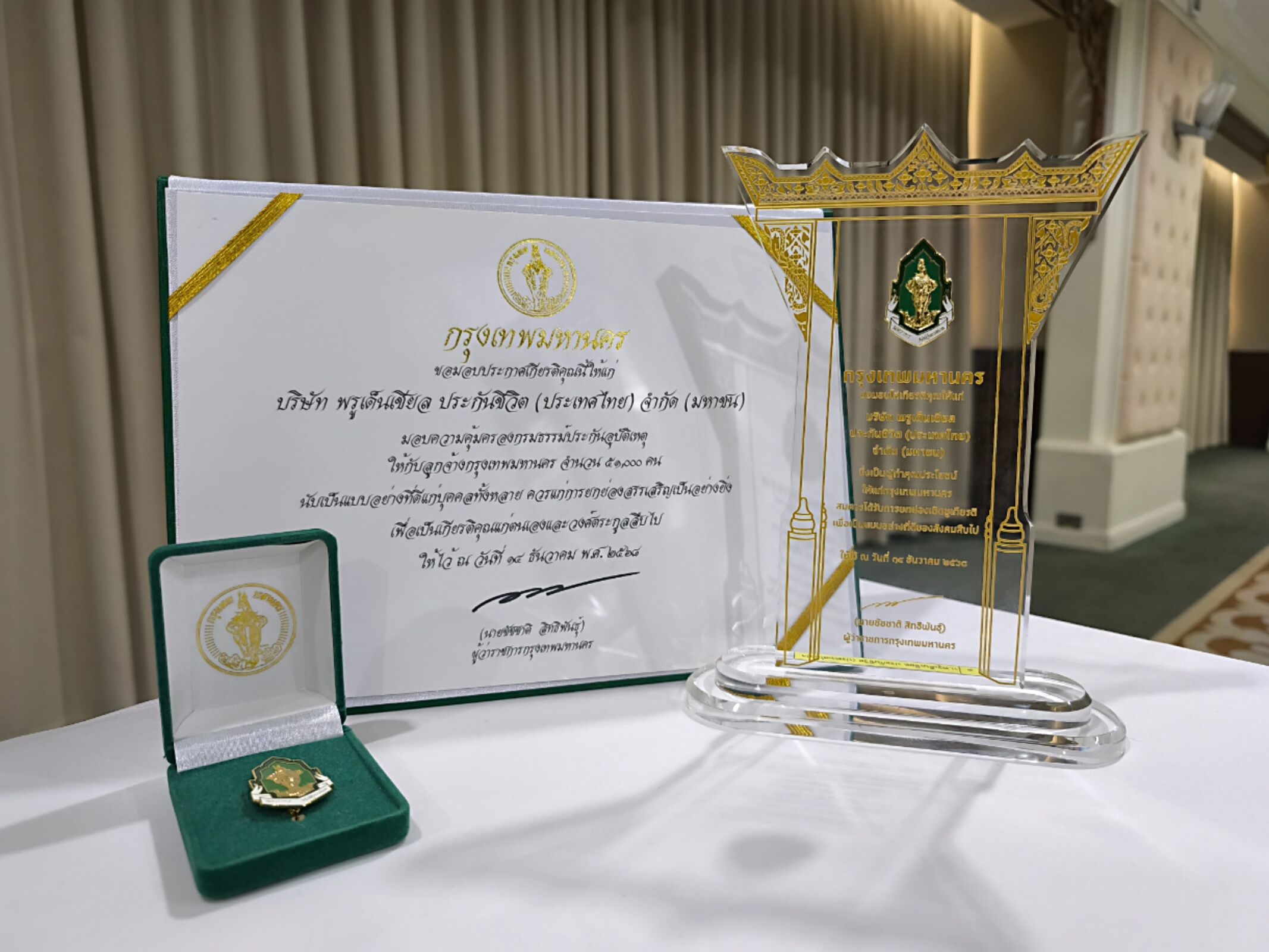 5 มกราคม 2569 : นายอิฎฐ์ อภิรักษ์ติวงศ์ ประธานเจ้าหน้าที่บริหารสายงานพัฒนาองค์กร พรูเด็นเชียล ประเทศไทย รับมอบประกาศเกียรติคุณ โล่รางวัล และเข็มเชิดชูเกียรติ ในฐานะองค์กรที่ทำคุณประโยชน์และคุณูปการต่อกรุงเทพมหานคร ผ่านโครงการ “Give The Future: การให้ที่ยั่งยืน คือ การให้ที่ส่งต่อได้” จาก นายชัชชาติ สิทธิพันธุ์ ผู้ว่าราชการกรุงเทพมหานคร โดยพิธีมอบรางวัลฯจัดขึ้น ณ ห้องรัตนโกสินทร์ ศาลาว่าการกรุงเทพมหานคร (เสาชิงช้า) เมื่อเร็วๆ นี้