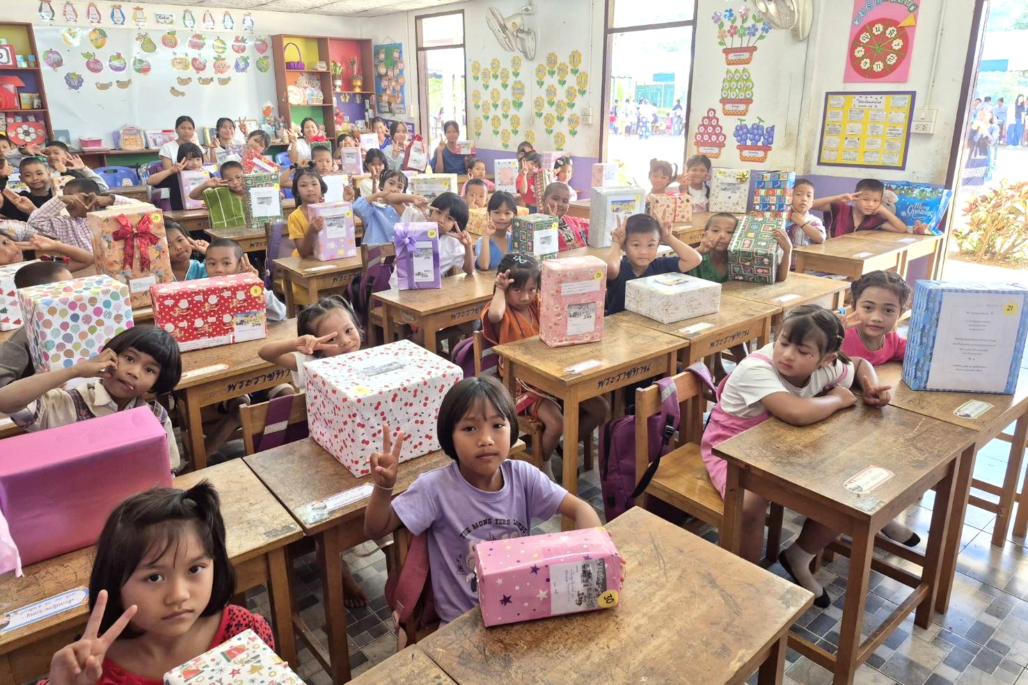 โครงการ “ของ (ขวัญ) พี่ให้น้อง” เป็นโครงการที่ธนาคารจัดมาอย่างต่อเนื่องเป็นปีที่ 7 ในปีนี้ได้เชิญชวนผู้บริหารและพนักงานบริษัทในกลุ่มเอสซีบี เอกซ์ จัดหาของขวัญให้กับน้อง ๆ โรงเรียนตำรวจตระเวนชายแดน ในจังหวัดกาญจนบุรี ซึ่งอยู่ในพื้นที่ห่างไกลและทุรกันดาร จำนวน 3 โรงเรียน รวม 537 คน ได้แก่ โรงเรียน ตชด.บ้านเรดาร์ โรงเรียน ตชด.สหธนาคารกรุงเทพ และศูนย์การเรียนรู้ ตชด. ปูนอินทรี - มูลนิธิกรุงศรี (บ้านไกรเกรียง) เพื่อเป็นการเติมเต็มความฝันในสิ่งที่น้องอยากได้และส่งเสริมการแบ่งปันในหมู่พนักงาน โดยมี นายกฤษณ์ จันทโนทก ประธานเจ้าหน้าที่บริหาร ธนาคารไทยพาณิชย์ พร้อมด้วยผู้บริหารและพนักงานกลุ่มเอสซีบีเอกซ์ ร่วมลงนามในการ์ดอวยพรขนาดใหญ่ และปล่อยขบวนรถนำกล่องของขวัญแห่งความสุขจากธนาคารไทยพาณิชย์ สำนักงานใหญ่ มุ่งสู่จังหวัดกาญจนบุรี โดยสาขาของธนาคารในพื้นที่ได้เป็นตัวแทนเดินทางไปส่งมอบพร้อมจัดกิจกรรมวันเด็กที่โรงเรียน