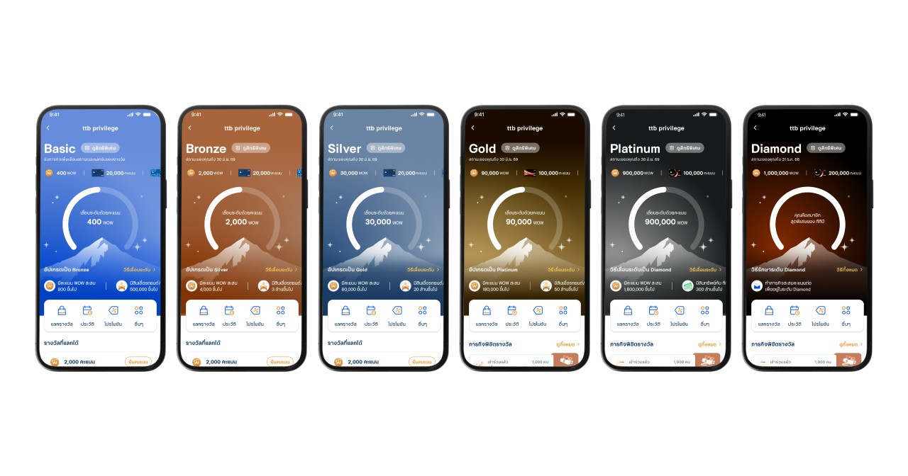 3. ลูกค้าสามารถสะสมคะแนน WOW เพื่อเลื่อนระดับสถานะ ttb privilege ให้สูงขึ้นได้ หรือเข้าถึงสถานะได้ง่าย ๆ แค่ถือครองผลิตภัณฑ์ของทีทีบีตามที่กำหนด ยิ่งสถานะสูงขึ้น ยิ่งเข้าถึงสิทธิพิเศษต่าง ๆ ได้มากขึ้น อาทิ สถานะ Bronze ลูกค้าจะได้คูปองส่วนลดร้านค้าชั้นนำทั่วไทยไว้กิน ช้อป ใช้ทุกเดือน สถานะ Silver ลูกค้าจะได้รับสิทธิพิเศษเพิ่มเติมขึ้นไปอีกทั้งคูปองล้างแอร์ ล้างรถ ดูหนังฟรี รวมทั้งความคุ้มครองจากฟรีประกันการเดินทาง สถานะ Gold ขึ้นไป จะได้รับเอกสิทธิ์เหนือระดับจากบัตรเครดิต ttb reserve ซึ่งให้ลูกค้าได้รูดบัตรใช้จ่ายต่างประเทศฟรี FX Rate 2.5% รับเครดิตเงินคืนสูงสุด 50% ร้านอาหาร Fine Dining หรือแลกไมล์การบินไทยได้เร็วยิ่งขึ้น รับฟรีประกันการเดินทางคุ้มครองสูงสุด 16 ล้านบาท สถานะ Platinum และ Diamond รับเพิ่มดอกเบี้ยโบนัสพิเศษจากบัญชีทีทีบี โนฟิกซ์ ดูหนังระดับ First Class ฟรี รวมถึงการได้รับเชิญเข้าร่วมประสบการณ์สุด Exclusive มากมาย
