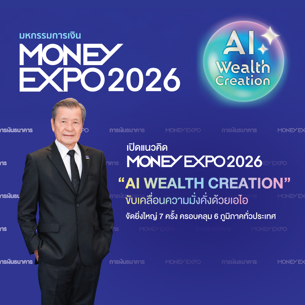 14 มกราคม 2569 : วารสารการเงินธนาคาร ประกาศแนวคิดการจัดงาน “มหกรรมการเงินประจำปี 2569 MONEY EXPO 2026” ภายใต้แนวคิด “AI WEALTH CREATION การใช้เอไอสร้างความมั่งคั่ง” มุ่งนำเทคโนโลยีปัญญาประดิษฐ์ (AI) ช่วยยกระดับการวางแผนการเงิน การลงทุน และการบริหารความ มั่งคั่งอย่างมีประสิทธิภาพ สอดรับโลกการเงินยุคดิจิทัล พร้อมเดินหน้าจัดงานอย่างยิ่งใหญ่ รวม 7 ครั้ง ใน 6 ภูมิภาคทั่วประเทศ โดยมีธนาคาร สถาบันการเงิน บริษัทประกัน บริษัทหลักทรัพย์ บริษัทจัดการกองทุน รวมถึงหน่วยงานภาครัฐและภาคเอกชนเข้าร่วมงานอย่างคับคั่ง