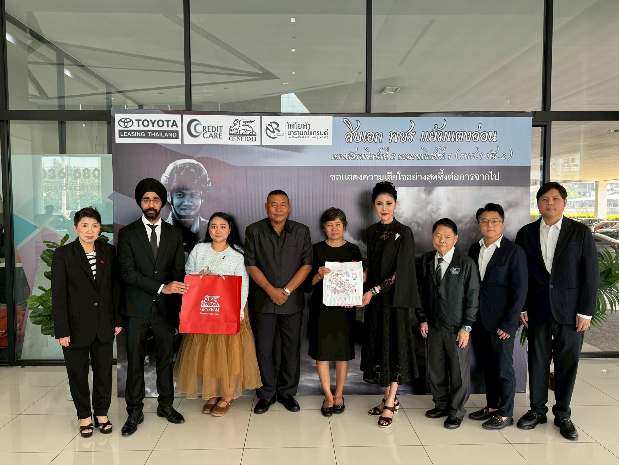 การดำเนินการส่งมอบสินไหมทดแทนครั้งนี้สะท้อนถึงความมุ่งมั่นของเจนเนอราลี่ และเครือข่ายโตโยต้าในการยืนหยัดเคียงข้าง ดูแล และไม่ทอดทิ้งสมาชิกครอบครัวโตโยต้าในทุกช่วงเวลาของชีวิต พร้อมร่วมแสดงความอาลัยและน้อมรำลึกถึงความเสียสละอันยิ่งใหญ่ของวีรบุรุษผู้ปฏิบัติหน้าที่เพื่อประเทศชาติ