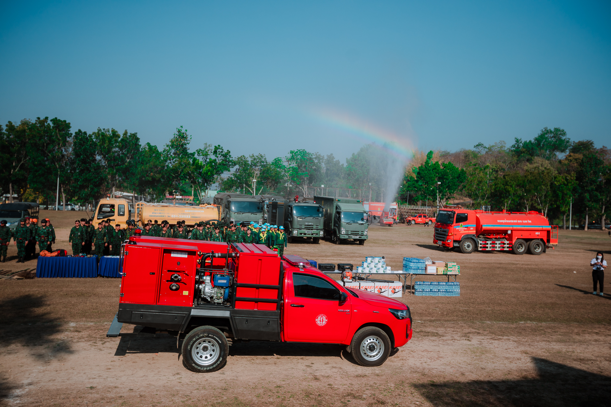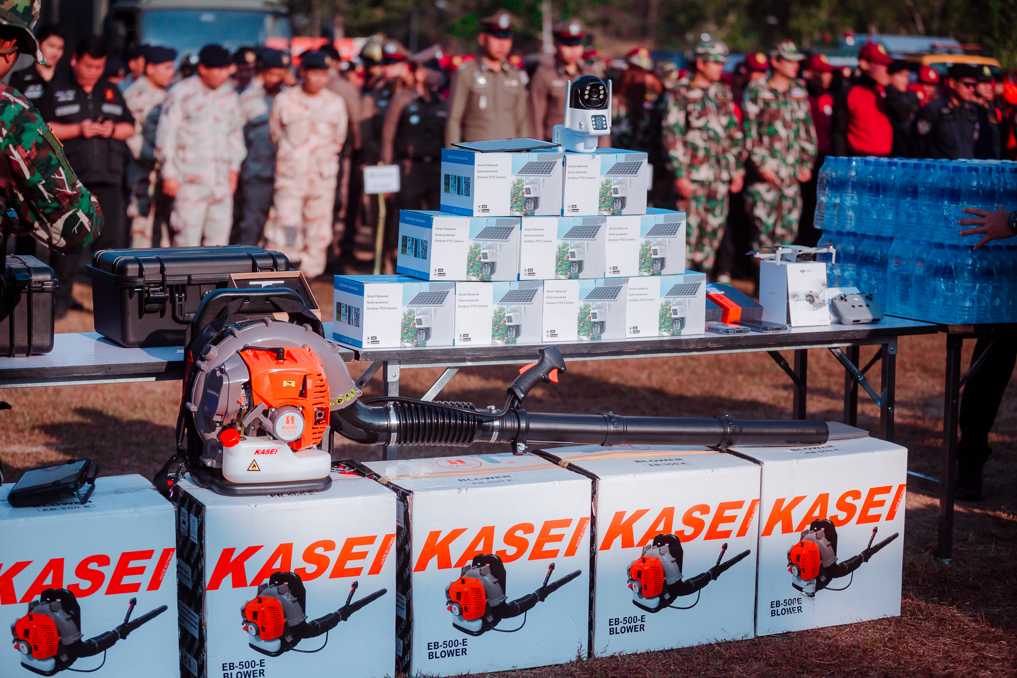 นอกจากนี้ยังสนับสนุน เครื่องเป่าใบไม้ (เครื่องยนต์ 2 จังหวะ) เพื่อช่วยเคลียร์เชื้อเพลิงในแนวกันไฟและสนับสนุนการทำงานภาคสนาม รวมถึง โทรศัพท์มือถือแบบ RUGGED Phone สำหรับการระบุพิกัด บันทึกข้อมูล สื่อสารระหว่างลาดตระเวนไฟป่าในพื้นที่ และเชื่อมสัญญาณภาพจากกล้อง CCTV และ โดรน DJI Mini 4K เพื่อใช้สำรวจมุมสูง ประเมินสถานการณ์ ตรวจสอบแนวไฟ/แนวควันเบื้องต้น ช่วยลดความเสี่ยงต่อเจ้าหน้าที่และเพิ่มประสิทธิภาพในการบริหารจัดการเหตุไฟป่าได้ดียิ่งขึ้น