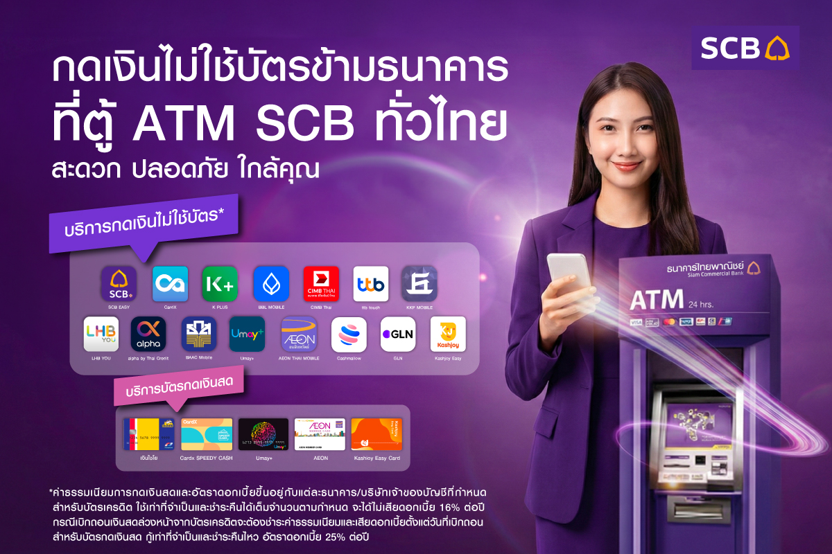 6 กุมภาพันธ์ 2569 : นายสักวัฏ อิทธิสวัสดิ์ ผู้ช่วยผู้จัดการใหญ่ ผู้บริหารสายงาน Branch Distribution Network ธนาคารไทยพาณิชย์จำกัด (มหาชน) กล่าวว่า ธนาคารไทยพาณิชย์ ยกระดับประสบการณ์ดิจิทัลแบงก์กิ้งอย่างต่อเนื่อง โดยเพิ่มช่องทางอำนวยความสะดวกให้ลูกค้า ด้วยการขยายบริการกดเงินไม่ใช้บัตรข้ามธนาคาร (Cross Bank Cardless ATM Withdrawal) ที่ตู้ ATM SCB กว่า 9,200 เครื่องทั่วประเทศ ครอบคลุมเครือข่ายธนาคารพันธมิตรและพาร์ตเนอร์ทั้งในและต่างประเทศสูงสุดในประเทศไทย และถือเป็นธนาคารแห่งแรกและแห่งเดียวในไทยที่เปิดให้บริการกดเงินไม่ใช้บัตรสำหรับโมบายแบงก์กิ้งจากต่างประเทศ ทำให้ลูกค้าทั้งชาวไทยและนักท่องเที่ยวต่างชาติสามารถเข้าถึงบริการทางการเงินได้สะดวกรวดเร็ว และปลอดภัยยิ่งขึ้น