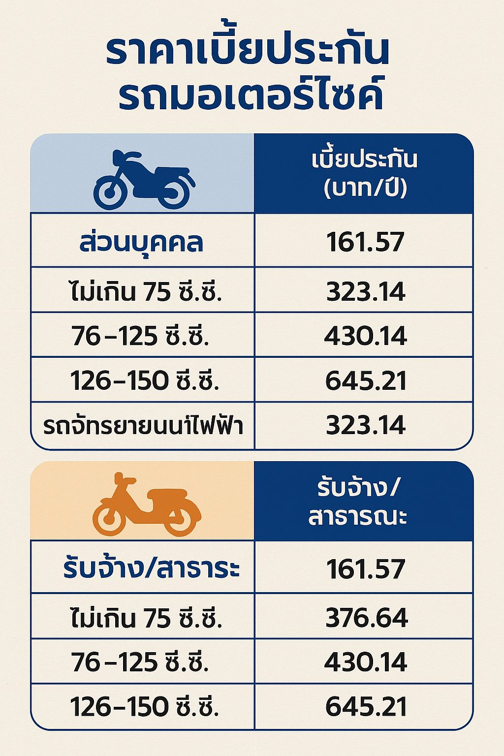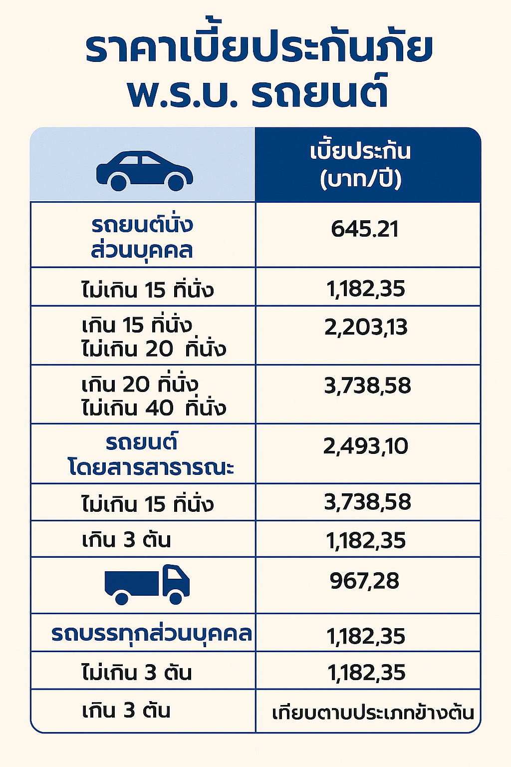ส่วนราคาเบี้ยประกันรถตามพ.ร.บ. มีดังนี้