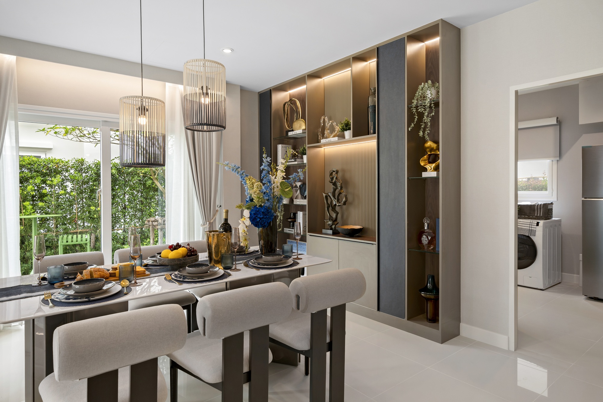 ขณะเดียวกัน ในส่วนของเฟอร์นิเจอร์ Built-in และงานตกแต่งที่ต้องใช้งานในชีวิตประจำวัน ศุภาลัยเลือกใช้ แผ่นลามิเนต ที่มีคุณสมบัติป้องกันและยับยั้งการเจริญเติบโตของแบคทีเรียและเชื้อรา เพื่อช่วยลดการสะสมเชื้อโรคในพื้นที่สัมผัสร่วม พร้อมลดการปล่อยสารอินทรีย์ระเหยง่ายจากวัสดุ เพื่อให้สภาพแวดล้อมภายในบ้านมีคุณภาพดีขึ้นอย่างต่อเนื่องในระยะยาว และยังให้ความสำคัญกับการใช้ทรัพยากรอย่างรับผิดชอบ โดยเลือกใช้วัสดุที่ผ่านการประเมิน EPD (Environmental Product Declaration) ซึ่งเป็นการประเมินผลกระทบต่อสิ่งแวดล้อมตลอดวงจรชีวิตผลิตภัณฑ์ (LCA: Life Cycle Assessment) ตั้งแต่การผลิตจนถึงหมดอายุการใช้งาน เพื่อช่วยลดผลกระทบต่อสิ่งแวดล้อมโดยรวม นอกจากนี้ยังคำนึงถึงการใช้ทรัพยากรอย่างรับผิดชอบผ่านวัสดุที่ได้รับการรับรอง FSC (Forest Stewardship Council) ซึ่งสะท้อนถึงการเลือกใช้ผลิตภัณฑ์จากแหล่งป่าไม้ปลูกหรือการจัดการป่าไม้อย่างเหมาะสม ลดการทำลายสิ่งแวดล้อมตั้งแต่ต้นทาง