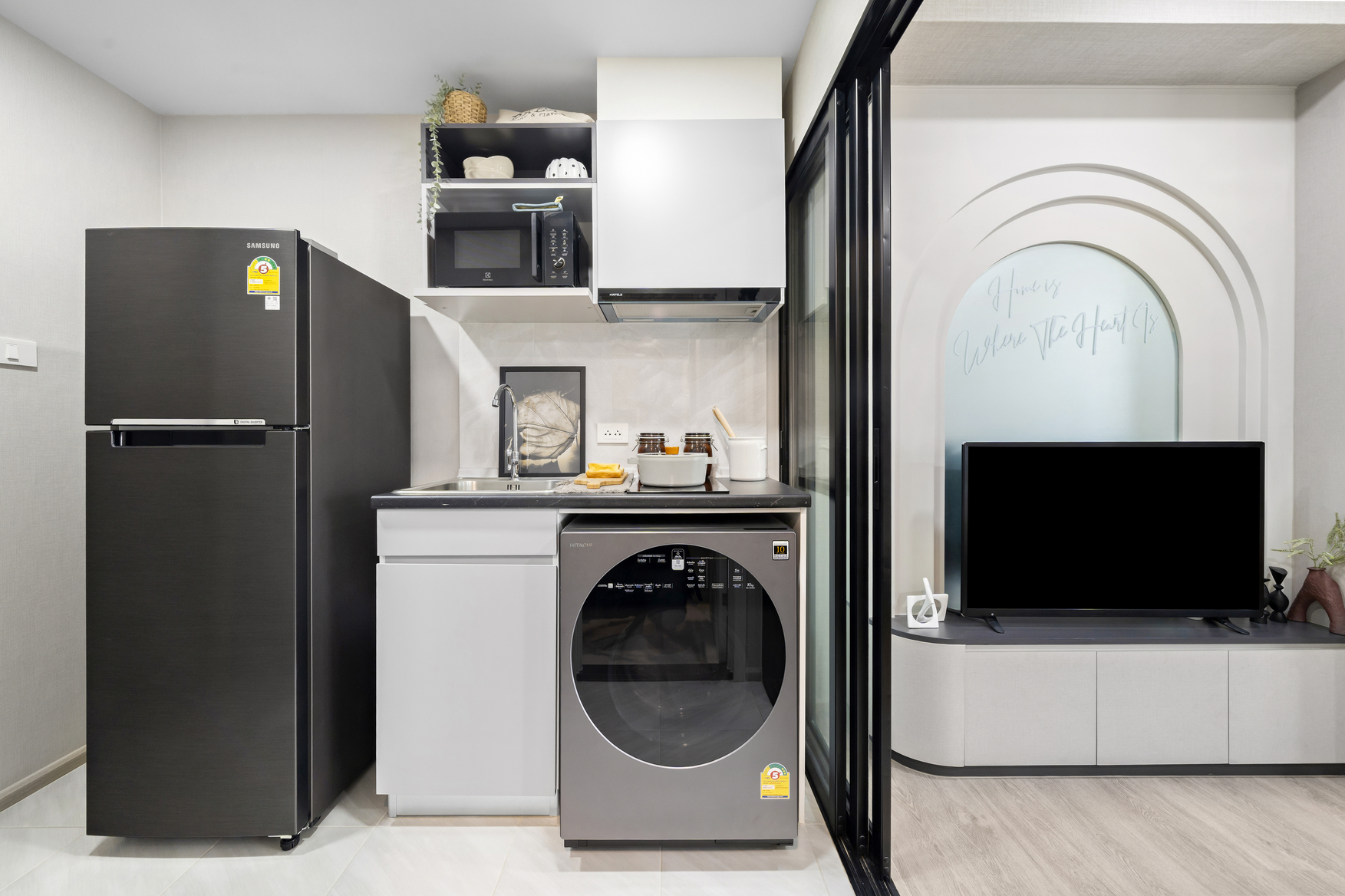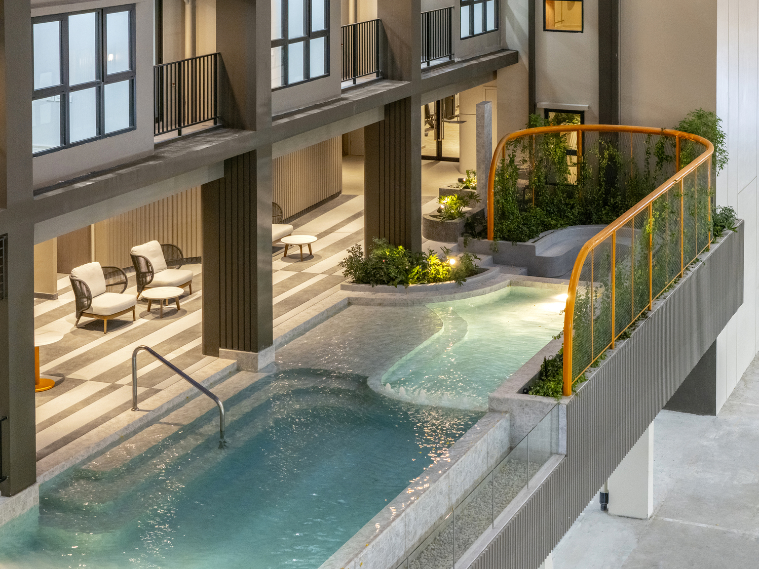 หนึ่งในไฮไลต์ที่สะท้อนแนวคิด Staycation ได้อย่างชัดเจนคือ Pool Access Room ห้องพักพิเศษในอาคาร A ที่ออกแบบให้พื้นที่ภายในห้องเชื่อมต่อกับสระว่ายน้ำโดยตรง เพียงเปิดประตูจากระเบียงก็สามารถก้าวลงสระได้ทันที เติมบรรยากาศการพักผ่อนแบบรีสอร์ตให้เกิดขึ้นได้จริงในทุกวัน ขณะที่พื้นที่ส่วนกลางของโครงการก็ครบครันและพร้อมใช้งาน ไม่ว่าจะเป็น Fitness, Co-working Space, Swimming Pool, Jacuzzi, Kids Pool, Roof Garden และ Jogging Trail รองรับทุกจังหวะชีวิต พร้อมเติมเต็มด้วยส่วนกลางแนวคิด New Lifestyle อาทิ Food Drop, Drop Store และ Private Storage เพื่อความสะดวกสบายยิ่งขึ้น ให้การกลับบ้านไม่ใช่แค่พัก…แต่คือการรีชาร์จพลังในแบบของคุณ