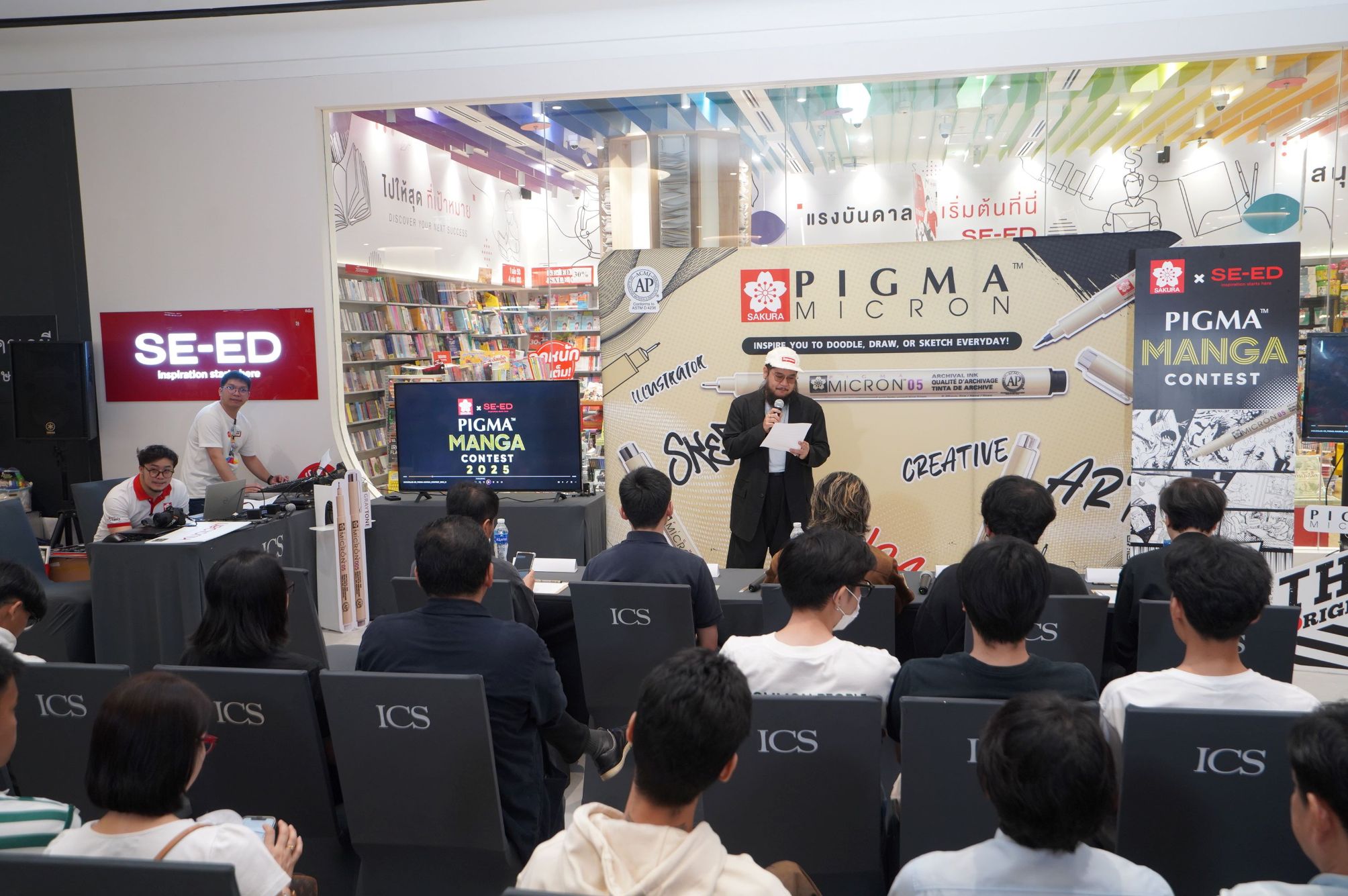 กรุงเทพฯ, 4 มีนาคม 2569 : บริษัท ซีเอ็ดยูเคชั่น จำกัด (มหาชน) หรือ ซีเอ็ด ร่วมกับ บริษัท ซากุระ โปรดักส์ (ไทย) จำกัด ประสบความสำเร็จในการจัดกิจกรรมประกวดวาดมังงะ “SAKURA x SE–ED : PIGMA MANGA CONTEST 2025” ภายใต้คอนเซ็ปต์ “MANGA WORLD” โดยบรรยากาศภายในงานประกาศผลและมอบรางวัลเป็นไปอย่างคึกคัก ได้รับความสนใจจากผู้เข้าประกวด คนรักมังงะ และผู้สนใจงานศิลปะจำนวนมาก ณ SE-ED Book Center สาขา ICS ถนนเจริญนคร