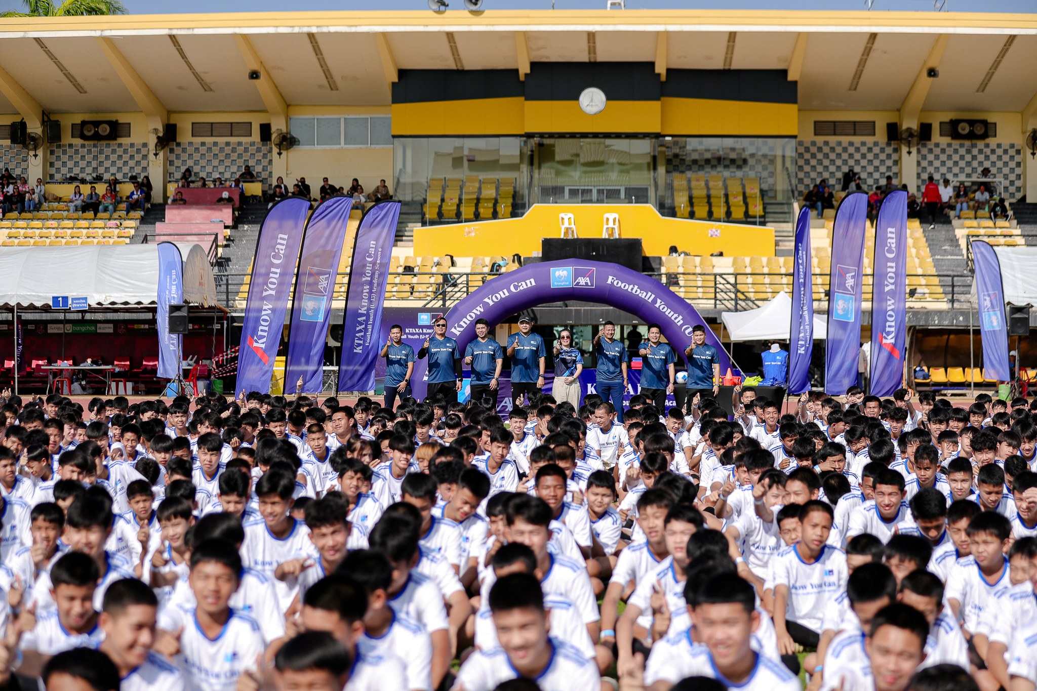 10 มีนาคม 2569 : บมจ.กรุงไทย-แอกซ่า ประกันชีวิต นำโดย คุณสุกัญญา อิสรานุวัฒน์ชัย รองประธานอาวุโส ฝ่ายสื่อสารการตลาด และภาพลักษณ์องค์กร (จากขวา คนที่ 4) ให้เกียรติเป็นประธานเปิดงานและกล่าวเปิด โครงการ KTAXA Know You Can Football Youth (U-15) Academy ที่จัดขึ้นอย่างต่อเนื่องเป็นปีที่ 6 ณ สนามกีฬาองค์การบริหารส่วนจังหวัดขอนแก่น โดยมีเยาวชนชาย-หญิง อายุระหว่าง 13-15 ปี เข้าร่วมโครงการกว่า 600 คน เพื่อชิงทุนการศึกษารวมมูลค่า 200,000 บาท พร้อมความคุ้มครองประกันอุบัติเหตุรวมกว่า 5,000,000 บาท