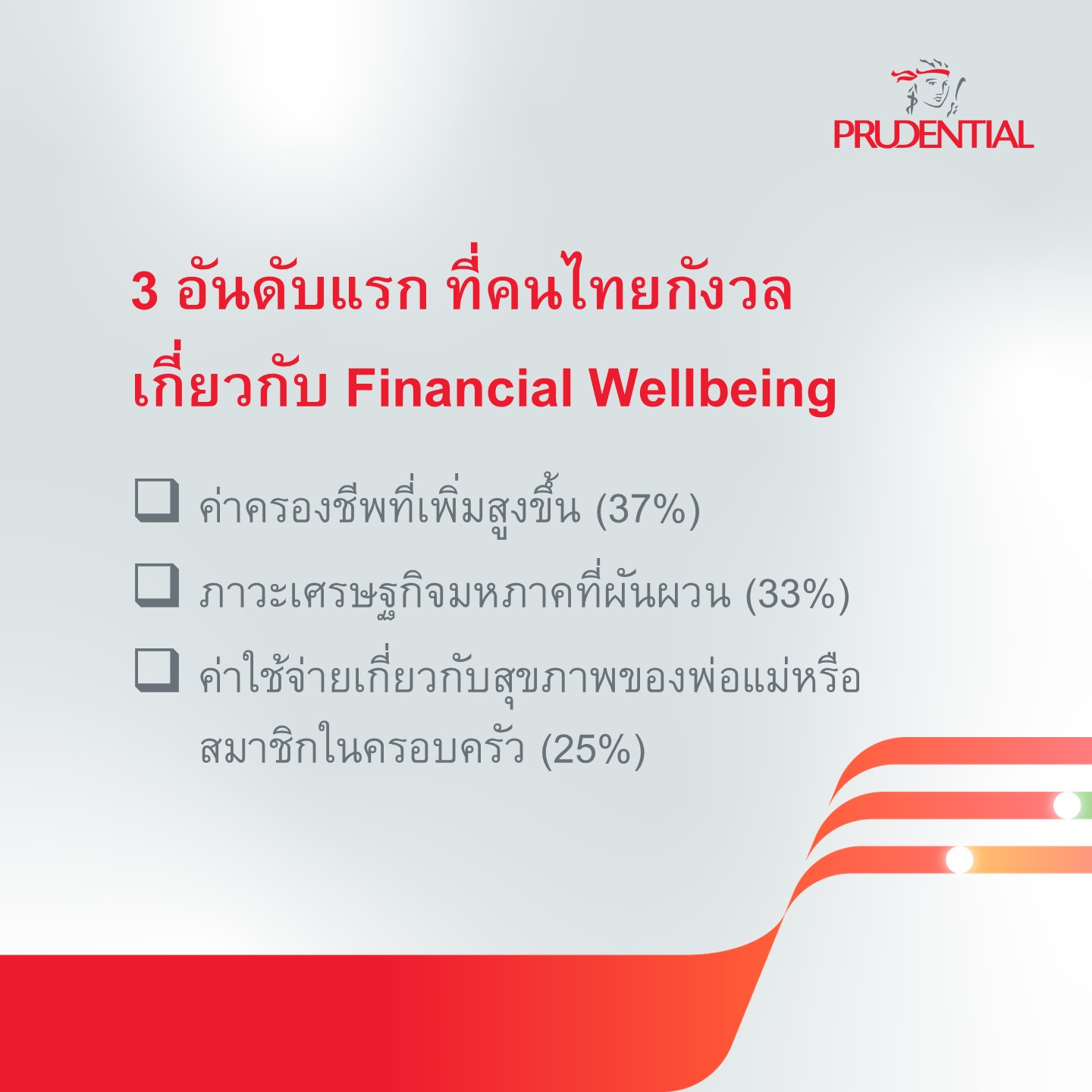 งานวิจัยนี้เป็นฐานข้อมูลสำคัญที่แสดง ดัชนีชี้วัดความเป็นอยู่ที่ดีทางการเงิน (Financial Wellbeing Index) ฉบับแรกของกลุ่มบริษัทพรูเด็นเชียล ครอบคลุมประชากรกว่า 7,000 คนในภูมิภาคเอเชีย ที่มีอายุระหว่าง 18-60 ปี ใน 8 ตลาดหลัก ได้แก่ ฮ่องกง อินโดนีเซีย มาเลเซีย ฟิลิปปินส์ สิงคโปร์ ไต้หวัน เวียดนาม รวมทั้ง ไทย ผลการศึกษาชี้ให้เห็นว่า ทั่วทั้งภูมิภาคเอเชียยังมีช่องว่างที่ชัดเจนระหว่างความมั่นคงทางการเงินปัจจุบัน กับความพร้อมทางการเงินในอนาคต สะท้อนว่าความมั่นใจในวันนี้ ไม่ได้หมายความว่าจะพร้อมรับมือกับอนาคตเสมอไป