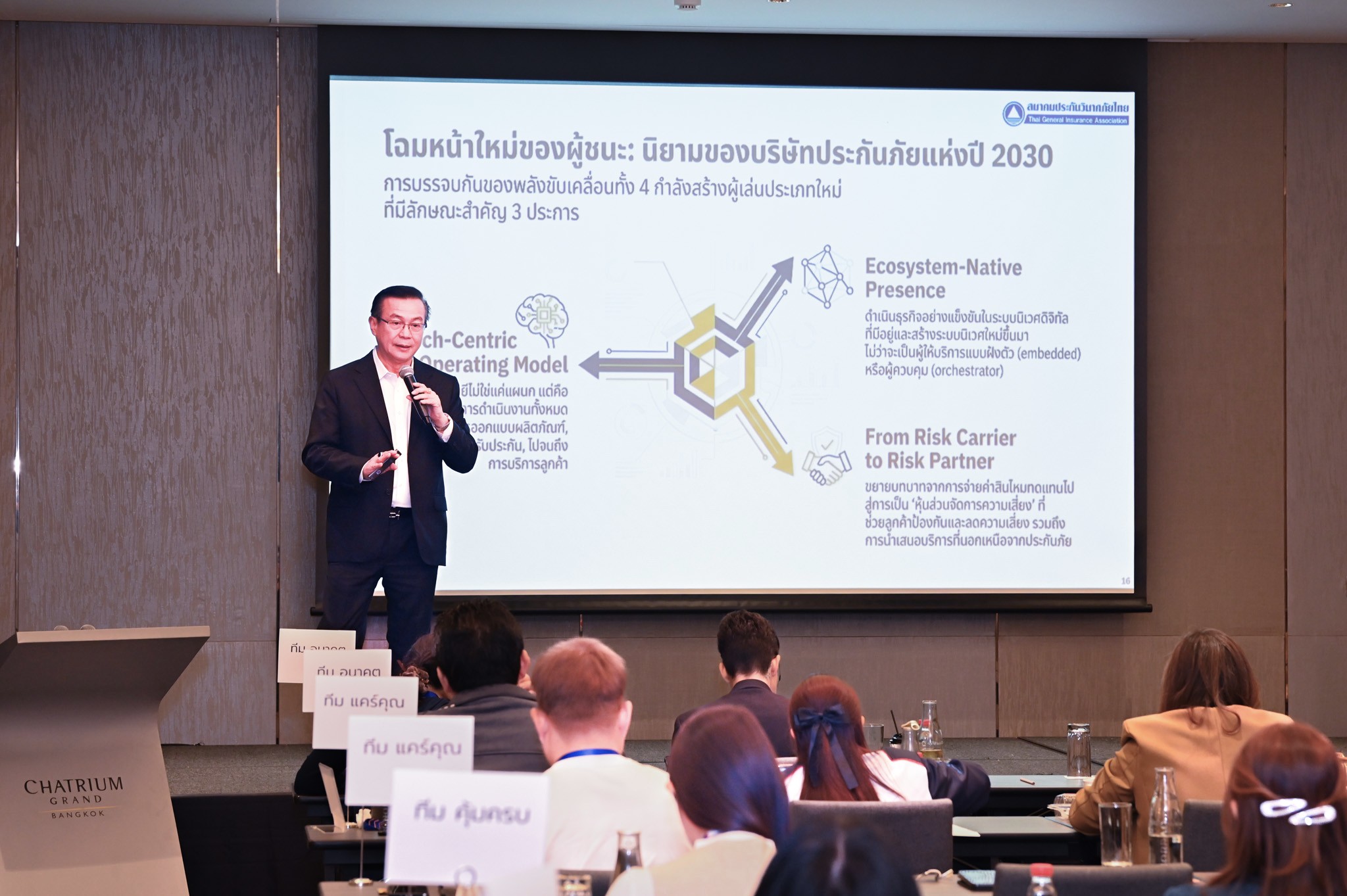 13 มีนาคม 2569 : ดร.สมพร สืบถวิลกุล นายกสมาคมประกันวินาศภัยไทย ให้เกียรติเป็นวิทยากรบรรยายพิเศษในหัวข้อ “ทิศทางและแนวโน้มอุตสาหกรรมประกันภัยของโลก” ถ่ายทอดมุมมองและแนวโน้มสำคัญของอุตสาหกรรมประกันภัยในระดับสากล พร้อมแบ่งปันองค์ความรู้ด้านการบริหารความเสี่ยงและการประกันภัยแก่ผู้เข้ารับการอบรมใน หลักสูตรผู้เชี่ยวชาญด้านการจัดการความเสี่ยงและวางแผนด้านการประกันภัย (Professional Risk and Insurance Management Executive Program: PRIME) ซึ่งจัดโดย สมาคมตัวแทนประกันชีวิตและที่ปรึกษาการเงิน (THAIFA) เพื่อพัฒนาศักยภาพบุคลากรด้านประกันภัยให้มีความเชี่ยวชาญด้านการบริหารจัดการความเสี่ยงและการวางแผนประกันภัยในระดับมาตรฐานสากล เมื่อวันที่ 11 มีนาคม 2569 ณ โรงแรมชาเทรียม แกรนด์ กรุงเทพฯ