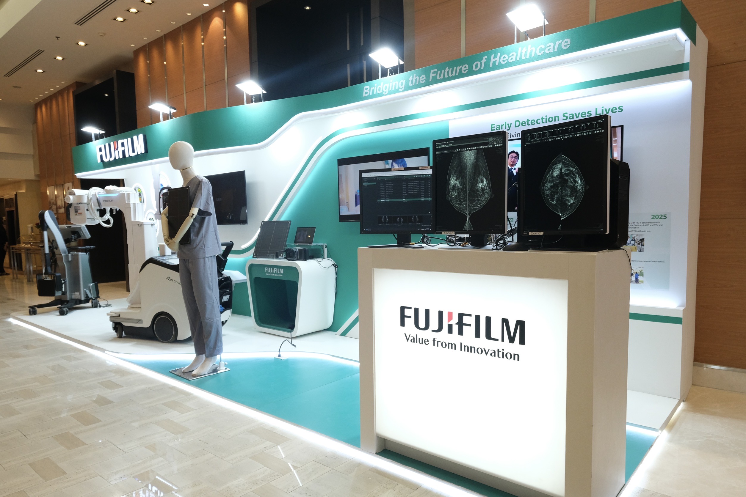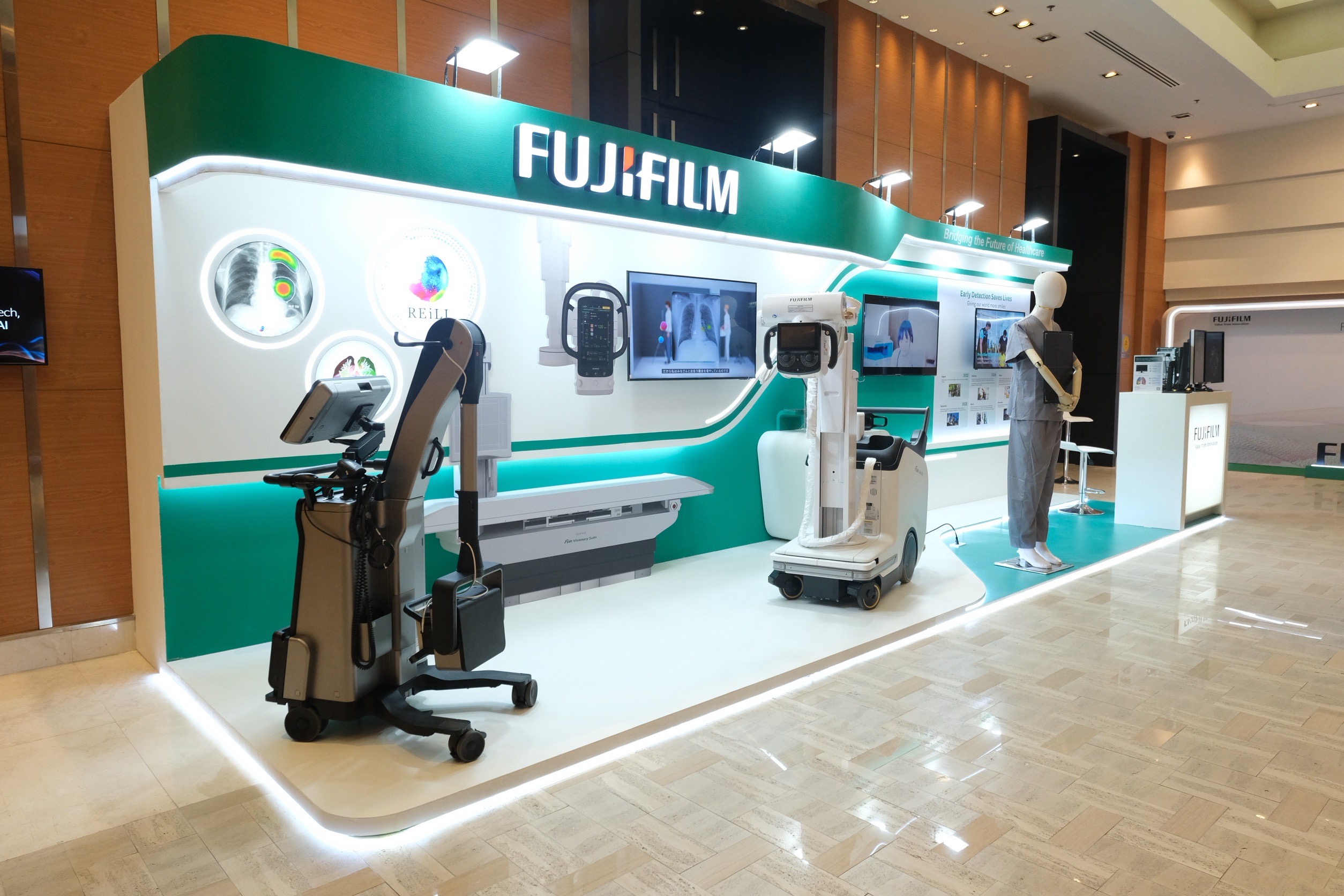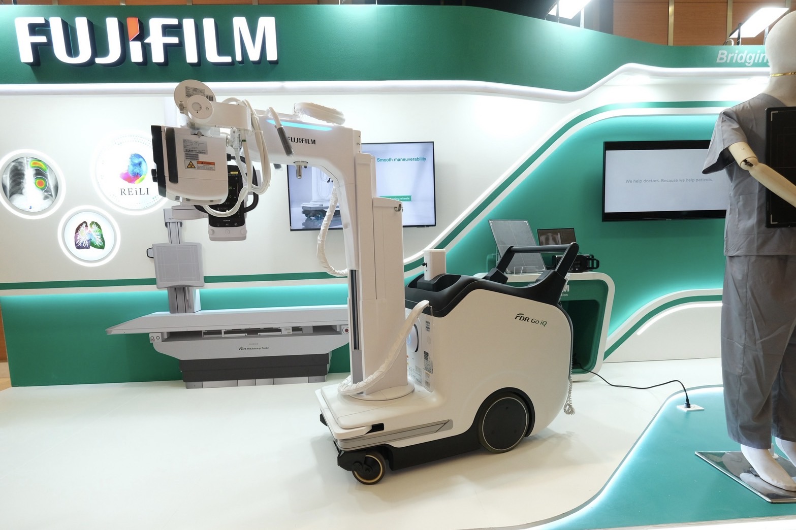 อีกหนึ่งโซลูชันที่เปิดตัวในงานคือ FDR Go iQ เครื่องเอกซเรย์เคลื่อนที่ ซึ่งออกแบบมาสำหรับสถานการณ์ฉุกเฉินและสภาพแวดล้อมที่มีทรัพยากรจำกัด มาพร้อมกำลังสูง ช่วยให้สามารถทำกรตรวจเอกซเรย์ได้ทุกประเภทโดยไม่ต้องเคลื่อนย้ายผู้ป่วยไปยังห้องเอกซเรย์ ทั้งยังมี D-EVO III แผ่นรับภาพเอกซเรย์ดิจิทัลที่ได้มาตรฐานกันฝุ่นและกันน้ำระดับ IP56 พร้อมการเคลือบสารต้านเชื้อแบคทีเรียสำหรับสภาพแวดล้อมที่ท้าทายในสถานพยาบาล นอกจากนี้ กล้อง 3D และซอฟต์แวร์ Position Navi ที่ขับเคลื่อนด้วย AI ยังช่วยลดความซับซ้อนในการจัดท่าและยกระดับคุณภาพของภาพ นับเป็นการช่วยลดภาระบุคลากร ในสถานการณ์ฉุกเฉินหรือหอผู้ป่วยวิกฤต ช่วยร่นระยะเวลาการวินิจฉัยและสนับสนุนการตัดสินใจทางการแพทย์ได้อย่างทันท่วงที