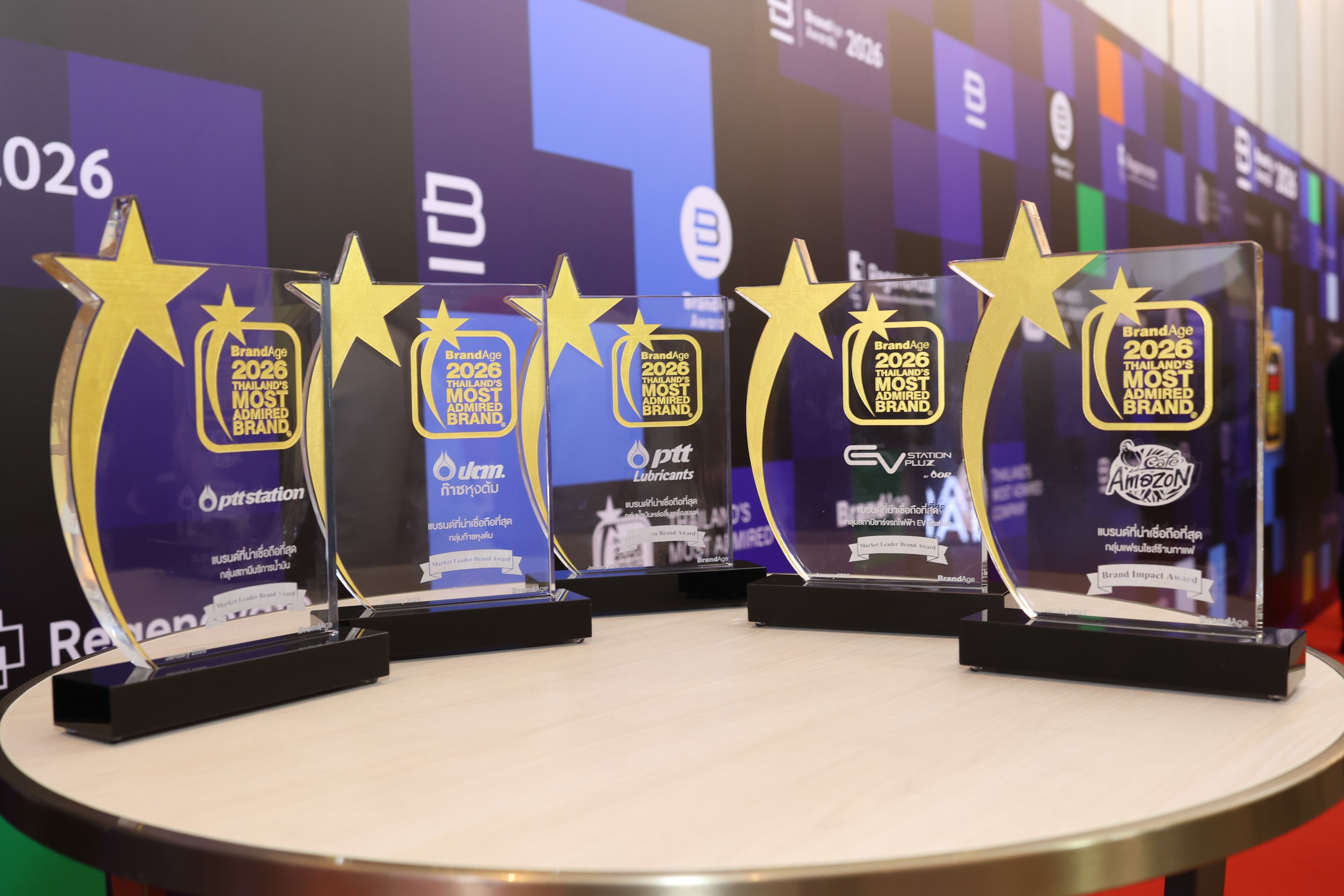 พร้อมกันนี้ยังได้รับรางวัล 2026 Thailand’s Most Admired Brand จากแบรนด์ภายใต้เครือ OR รวม 10 รางวัล โดย PTT Station สถานีเติมเต็มทุกความสุข ครองอันดับ 1 ในหมวดช่องทางขายสมัยใหม่ กลุ่มสถานีบริการน้ำมัน พร้อมรางวัลพิเศษ Market Leader Brand Award ด้าน PTT Lubricants ผู้นำตลาดน้ำมันหล่อลื่นเครื่องยนต์ ครองอันดับ 1 ในหมวดยานยนต์ กลุ่มน้ำมันหล่อลื่นเครื่องยนต์ พร้อมรางวัลพิเศษ Innovation Brand Award ขณะที่ Café Amazon แบรนด์ร้านกาแฟสัญชาติไทยที่มีเครือข่ายสาขากว่า 4,700 แห่งทั่วโลก ครองอันดับ 1 ในหมวดช่องทางขายสมัยใหม่ กลุ่มแฟรนไชส์ร้านกาแฟ