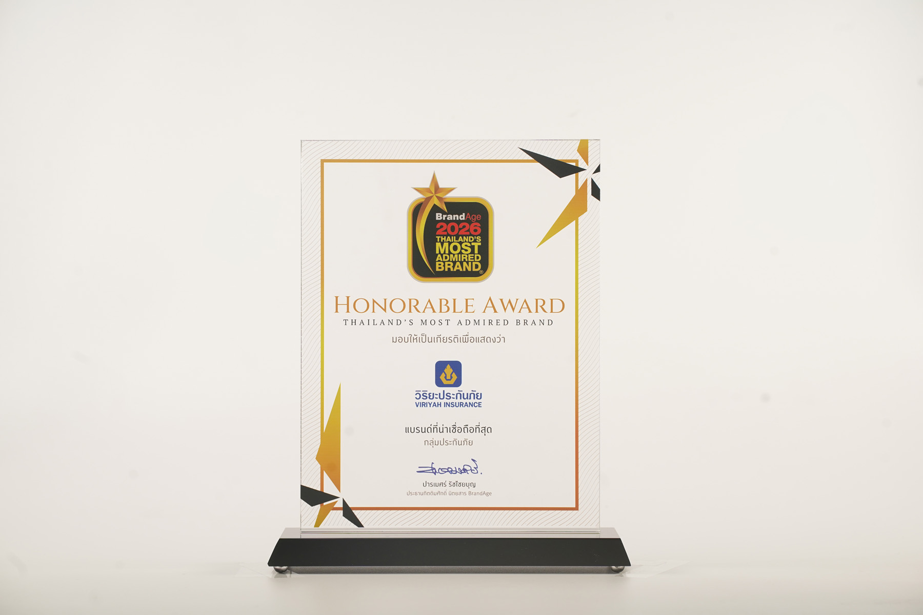 31 มีนาคม 2569 : ดร.อรรชกา สีบุญเรือง อดีตรัฐมนตรีว่าการกระทรวงอุตสาหกรรม และรัฐมนตรีว่าการกระทรวงวิทยาศาสตร์และเทคโนโลยี และนายธนเดช กุลปิติวัน บรรณาธิการบริหารนิตยสาร BrandAge ร่วมแสดงความยินดีกับ นายอมร ทองธิว กรรมการผู้จัดการ บริษัท วิริยะประกันภัย จำกัด (มหาชน) ในโอกาสเข้ารับรางวัล “2026 Thailand’s Most Admired Brand” ต่อเนื่องเป็นปีที่ 23 (2004-2026) จากผลวิจัยความนิยมโดยนิตยสาร BrandAge ที่ศึกษาความคิดเห็นของผู้บริโภคทั่วประเทศ ร่วมกับคณาจารย์จากมหาวิทยาลัยชั้นนำ สะท้อนความไว้วางใจของผู้บริโภคที่เชื่อมั่นให้วิริยะประกันภัยดูแลความเสี่ยงในทุกสถานการณ์ ท่ามกลางบริบทโลกที่เปลี่ยนแปลงอย่างรวดเร็ว