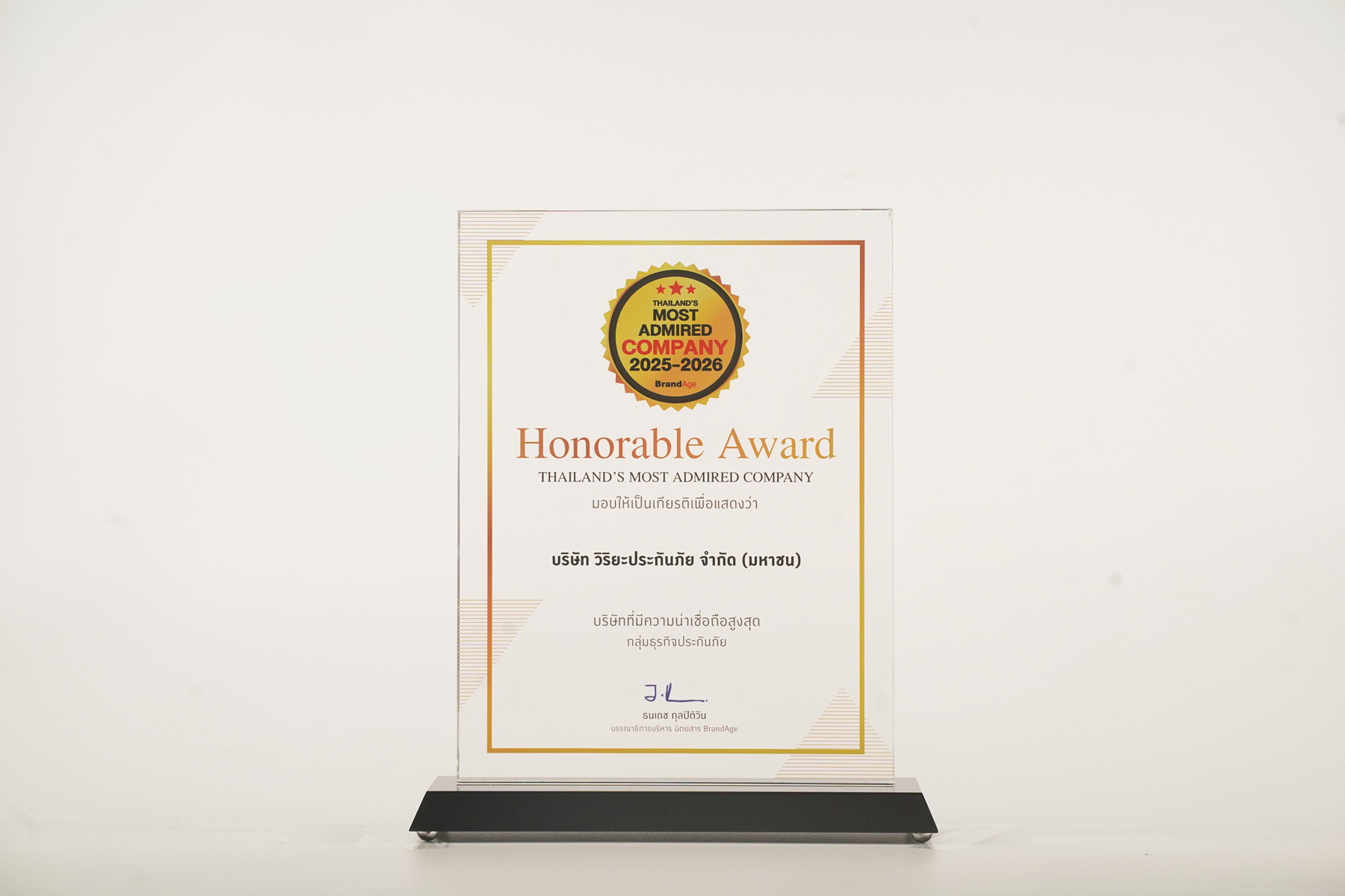 พร้อมกันนี้ บริษัทฯ ยังได้รับรางวัล “2025-2026 Thailand’s Most Admired Company” โดยได้รับรางวัลดังกล่าว เป็นครั้งที่ 5 (2020 และ 2023-2026) ตอกย้ำความมุ่งมั่นในการดำเนินธุรกิจด้วยความโปร่งใส ยึดมั่นในหลักธรรมาภิบาล ควบคู่กับการสร้างคุณค่าให้แก่ผู้เอาประกันภัย คู่ค้า และสังคมไทยอย่างยั่งยืนบนพื้นฐาน “ความเป็นธรรม คือ นโยบาย” ณ Prestige Hall Grande Centre Point Prestige Bangkok