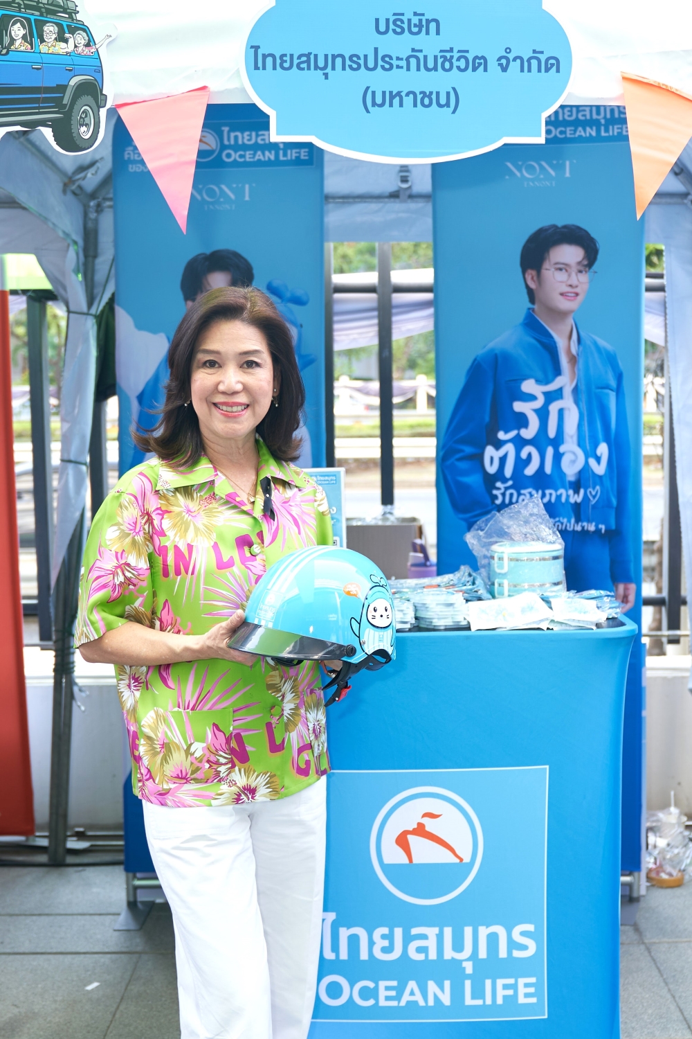 ในโอกาสนี้ OCEAN LIFE ไทยสมุทรประกันชีวิต ได้ออกบูทกิจกรรมสุดสร้างสรรค์เพื่อส่งต่อพลังความรักและความห่วงใย ชวนประชาชนร่วมแชร์เพลง 'รักคือพลังของชีวิต' เพื่อรับของที่ระลึกสุดเอ็กซ์คลูซีฟ พร้อมสร้างการตระหนักรู้ถึงความปลอดภัยบนท้องถนน ด้วยการมอบ “หมวกนิรภัยโอชิ” จำนวน 30 ใบ แก่ผู้ขับขี่รถจักรยานยนต์และพี่วินมอเตอร์ไซค์รับจ้างในย่านรัชดาภิเษก ซึ่งเป็นการย้ำเตือนถึงวินัยจราจรและสร้างเกราะป้องกันอุบัติเหตุในทุกเส้นทาง