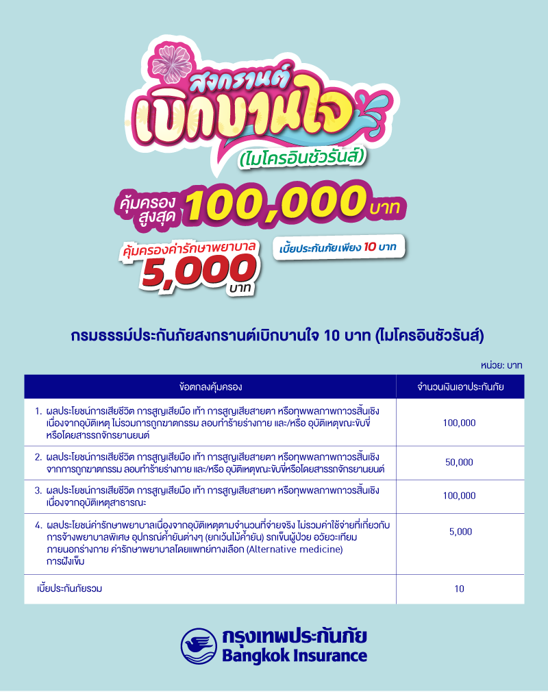 กรมธรรม์ประกันภัยสงกรานต์เบิกบานใจ 10 บาท (ไมโครอินชัวรันส์)