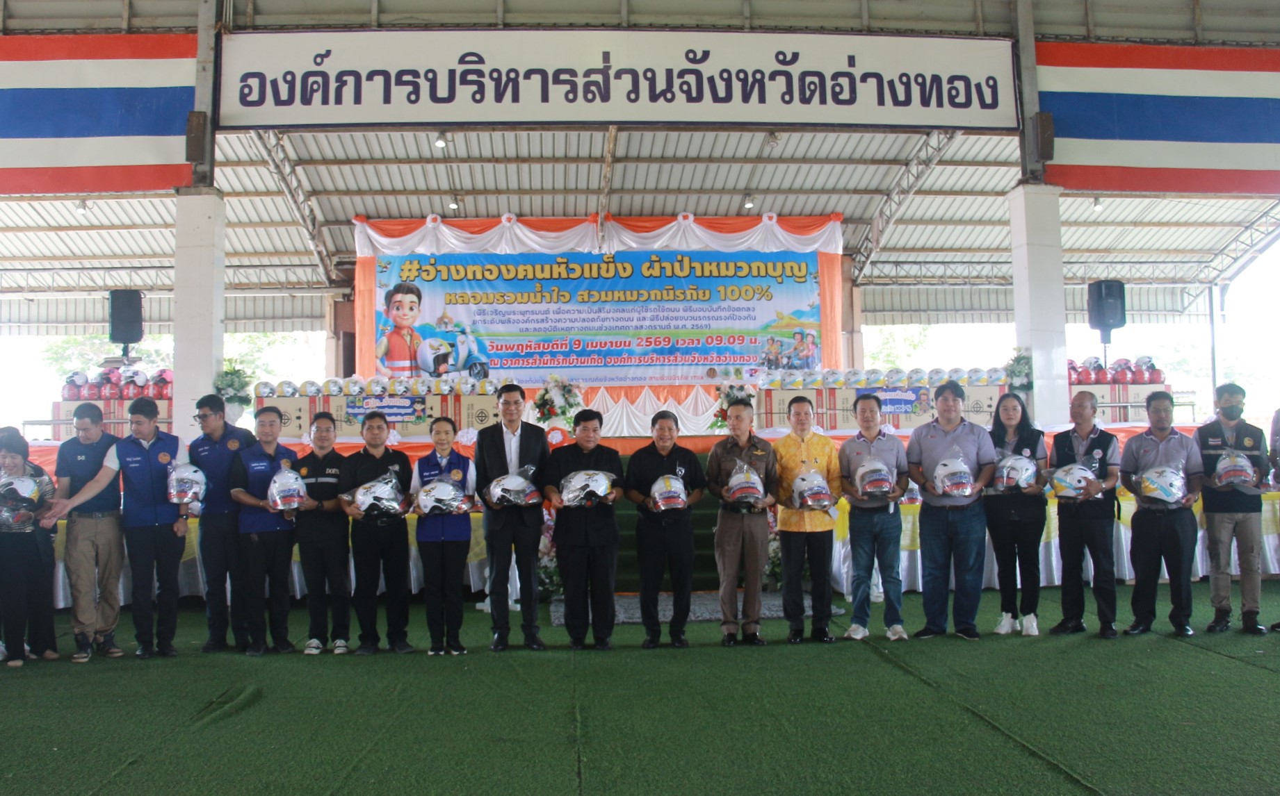 10 เมษายน 2569 : บริษัท กลางคุ้มครองผู้ประสบภัยจากรถ จำกัด โดย ประยูร ภู่แส รองกรรมการผู้จัดการ มอบหมวกนิรภัย จำนวน 200 ใบ จากบริษัท กลางคุ้มครองผู้ประสบภัยจากรถ จำกัด และบริษัท ไทยฮอนด้า จำกัด เพื่อร่วมสนับสนุนกิจกรรมโครงการอ่างทอง “ฅนหัวแข็ง” ผ้าป่าหมวกบุญ หลอมรวมน้ำใจ สวมหมวกนิรภัย 100% โดยมี นที มนตริวัต ผู้ว่าราชการจังหวัดอ่างทอง ประธานในพิธีให้เกียรติรับมอบ กิจกรรมดังกล่าวจัดขึ้นโดยสำนักงานป้องกันและบรรเทาสาธารณภัยจังหวัดอ่างทอง โดยภายในงานมีกิจกรรมสำคัญ คือ พิธีเจริญพระพุทธมนต์และปะพรมน้ำมนต์บนหมวกนิรภัย “รุ่นฅนหัวแข็ง” รุ่นแรก จำนวน 3,391 ใบ เพื่อมอบให้แก่ชาวอ่างทอง ณ อาคารสำนึกรักบ้านเกิด องค์การบริหารส่วนจังหวัดอ่างทอง อำเภอเมืองอ่างทอง จังหวัดอ่างทอง