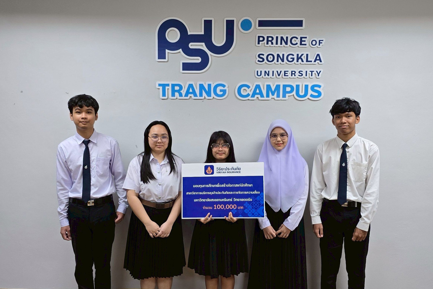 22 เมษายน 2569 : ผศ. ดร.ปาริชาติ มณีมัย คณบดีคณะพาณิชยศาสตร์และการจัดการ มหาวิทยาลัยสงขลานครินทร์ วิทยาเขตตรัง รับมอบทุนการศึกษา มูลค่า 100,000 บาท จากบริษัท วิริยะประกันภัย จำกัด (มหาชน) โดยมี เสาวคนธ์ วงศ์กองแสง ผู้จัดการฝ่ายปฏิบัติการภาค 5 (ภาคใต้) ด้านสาขา เป็นผู้แทนมอบ เพื่อส่งเสริมโอกาสทางการศึกษาให้แก่นักศึกษาชั้นปีที่ 1 ในหลักสูตรด้านประกันภัยและการจัดการความเสี่ยง สาขาการบริหารธุรกิจประกันภัยและการจัดการความเสี่ยง สามารถพัฒนาศักยภาพการเรียนรู้ของตนเองได้อย่างมีประสิทธิภาพ โดยมี ผศ. ดร.พงษ์พิช เพชรสกุลวงศ์ ประธานหลักสูตรบริหารธุรกิจบัณฑิต สาขาการบริหารธุรกิจประกันภัยและการจัดการความเสี่ยง และผศ. ดร.ณรงค์ฤทธิ์ ปริสุทธิ์กุล ผู้ช่วยอธิการบดีฝ่ายวิชาการและวิจัย ร่วมเป็นเกียรติในพิธีมอบ ณ ห้องประชุม MBA มหาวิทยาลัยสงขลานครินทร์ วิทยาเขตตรัง