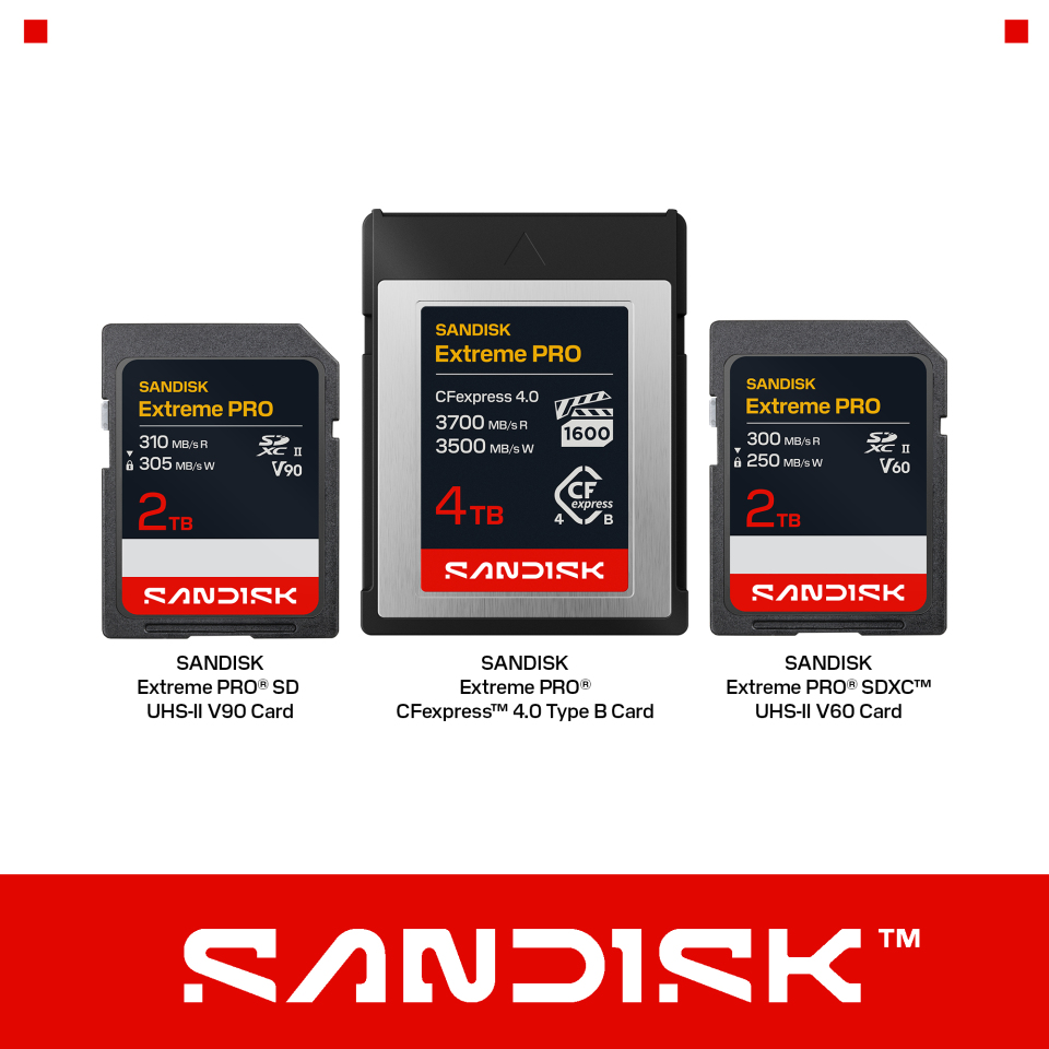- การ์ดหน่วยความจำรุ่นล่าสุดจาก Sandisk ที่มอบความเร็วในการอ่านสูงสุดถึง 3,700MB/s และความเร็วในการเขียนสูงสุด 3,500MB/s พร้อมประสิทธิภาพการเขียนแบบต่อเนื่องที่ออกแบบมาเพื่อรองรับการบันทึกวิดีโอแบบบิตเรตสูงได้อย่างมีเสถียรภาพ อีกทั้งยังรองรับความจุสูงสุดถึง 4TB รองรับการบันทึกต่อเนื่องได้ยาวนานขึ้น และการถ่ายทำความเร็วสูงในระดับความละเอียด 12K โดยมีกำหนดวางจำหน่ายในไตรมาส 3 ปี 2026
