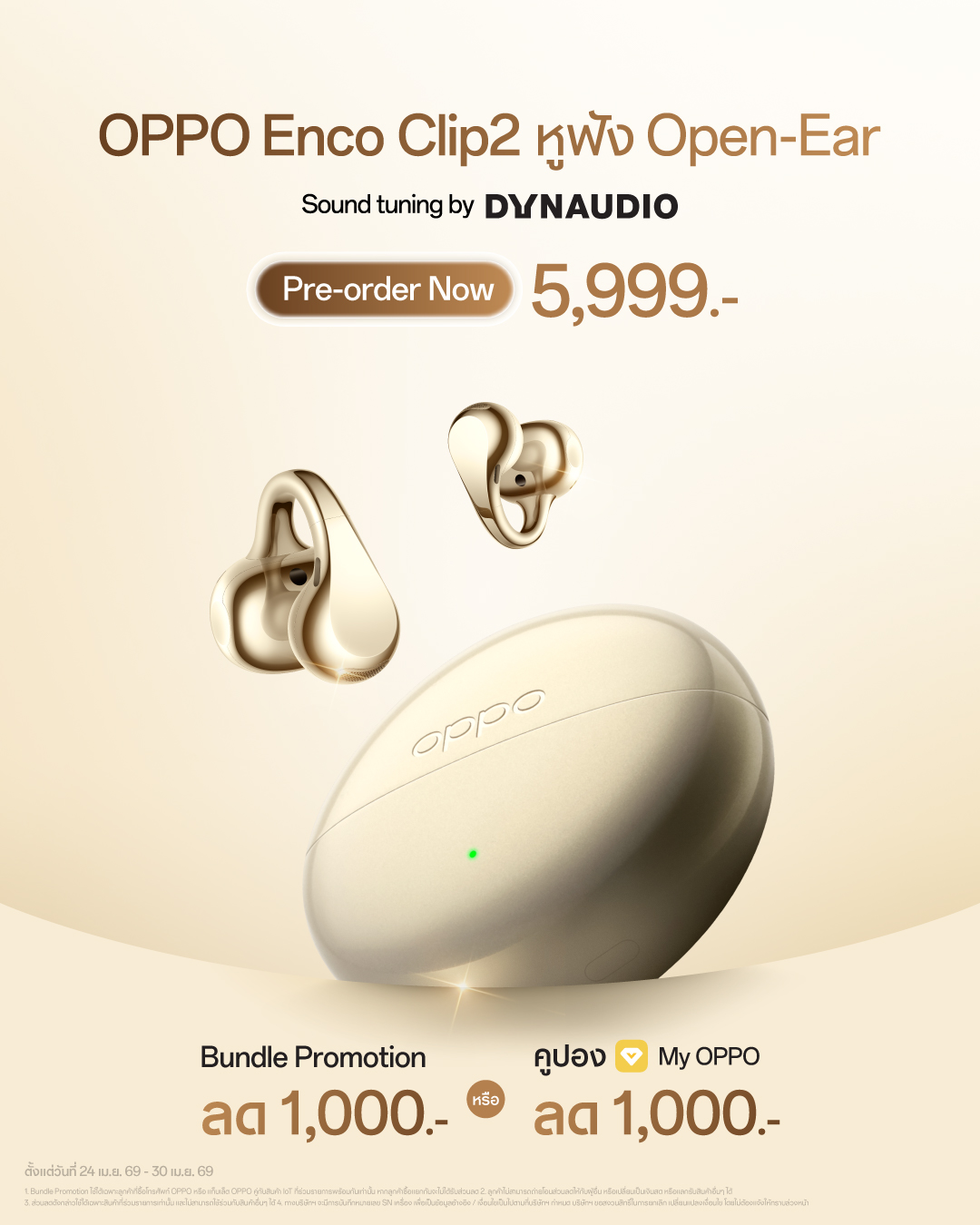 ออปโป้เดินหน้าเติมเต็มอีโคซิสเต็มด้วยผลิตภัณฑ์ IoT รุ่นล่าสุด นำโดย OPPO Enco Clip2 หูฟังโอเพนเอียร์สไตล์ Ear Cuff ดีไซน์เทรนดี้รูปทรงไร้รอยต่อที่เน้นความเบาสบายแบบ Zero-Sense ชูจุดขายหนึ่งเดียวในกลุ่มหูฟังโอเพนเอียร์ที่ได้รับมาตรฐานการปรับจูนเสียงจากแบรนด์ระดับโลกอย่าง Dynaudio ผสานเทคโนโลยี Bone Conduction เพื่อการสนทนาที่คมชัด มั่นใจด้วยมาตรฐานกันน้ำ IP55 และแบตเตอรี่ที่ใช้งานได้ยาวนานต่อเนื่อง 40 ชั่วโมง วางจำหน่ายราคา 5,999 บาท ในส่วนของหูฟังไร้สายระดับโปร OPPO Enco Air5 Pro มุ่งเน้นการมอบอรรถรสการฟังขั้นสูงสุดด้วยระบบตัดเสียงรบกวน 55 เดซิเบล ผ่านการรับรองจาก TÜV Rheinland มาพร้อมไดรเวอร์ขนาดใหญ่ 12 มม. เคลือบไทเทเนียม รองรับ Hi-Res Audio และ LHDC 5.0 พร้อมอัดแน่นด้วยฟีเจอร์อัจฉริยะอย่าง AI Translate แปลภาษาแบบเรียลไทม์ และแบตเตอรี่ที่ตอบโจทย์การใช้งานยาวนานสูงสุดถึง 54 ชั่วโมง วางจำหน่ายราคา 2,999 บาท