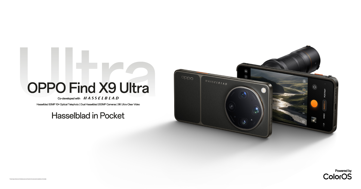 ออปโป้ประกาศเปิดตัว OPPO Find X9 Ultra และ OPPO Find X9s รุ่นใหม่ล่าสุดอย่างเป็นทางการ มาพร้อมนิยามกล้องมือถือไปสู่อุปกรณ์ระดับมืออาชีพ ที่มาพร้อมกับประสิทธิภาพระดับอัลตราใน OPPO Find X9 Ultra ที่มาพร้อมระบบกล้อง Hasselblad Master ถึง 5 ตัว นำโดยครั้งแรกและหนึ่งเดียวในอุตสาหกรรม กับกล้อง Hasselblad 50MP เทเลโฟโต้ ซูมออปติคอล 10 เท่า พร้อมเทคโนโลยี Ultra-Sensing ถ่ายทอดทุกรายละเอียดได้อย่างคมชัดแม้ในระยะไกล ทำงานร่วมกับกล้องหลัก Hasselblad 200MP พร้อมเทคโนโลยี Ultra-Sensing ซึ่งเป็นกล้องหลักที่คมชัดที่สุดในอุตสาหกรรม มอบภาพถ่ายระดับ DSLR ที่แม้จะครอปภาพก็ยังคงความละเอียดและมิติที่สวยงามระดับโปร เสริมศักยภาพการถ่ายภาพให้เหนือชั้นยิ่งขึ้นด้วย OPPO Hasselblad Earth Explorer Kit