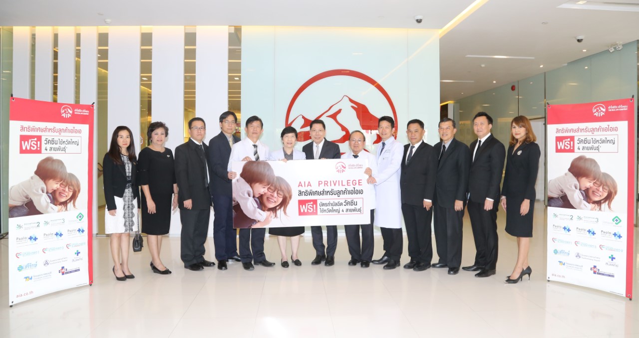 25 เมษายน 2560 : เอไอเอ ประเทศไทย นำโดย เอกรัตน์ ฐิติมั่น (ที่ 4 จากขวา) ประธานเจ้าหน้าที่ฝ่ายดูแลลูกค้า และ ณาตยา สุขุม (ที่ 3 จากขวา) ประธานเจ้าหน้าที่ฝ่ายการตลาด ร่วมด้วย รศ.นพ.นิพิฐ พิรเวช (ที่ 4 จากซ้าย)ผู้อำนวยการฝ่ายเฮลท์แคร์ และ นพ. สมสกุล ศรีพิสุทธิ์ (ที่ 3 จากซ้าย) ผู้ช่วยผู้อำนวยการอาวุโสฝ่ายเฮลท์แคร์ จับมือ 14 โรงพยาบาล ได้แก่ โรงพยาบาลพญาไท 2, โรงพยาบาลพญาไท 3, โรงพยาบาลเปาโล พหลโยธิน, โรงพยาบาลเปาโล เกษตร, โรงพยาบาลเปาโล สมุทรปราการ,โรงพยาบาลรามคำแหง, โรงพยาบาลวิภาวดี, โรงพยาบาลสินแพทย์, โรงพยาบาลเสรีรักษ์, โรงพยาบาลบางปะกอก 1, โรงพยาบาลบางปะกอก 3, โรงพยาบาลบางปะกอก 9 อินเตอร์เนชั่นแนล, โรงพยาบาลธนบุรี 1 และโรงพยาบาลจุฬารัตน์ 3 อินเตอร์ โดยได้รับเกียรติจากคณะผู้บริหารโรงพยาบาลร่วมถ่ายภาพ