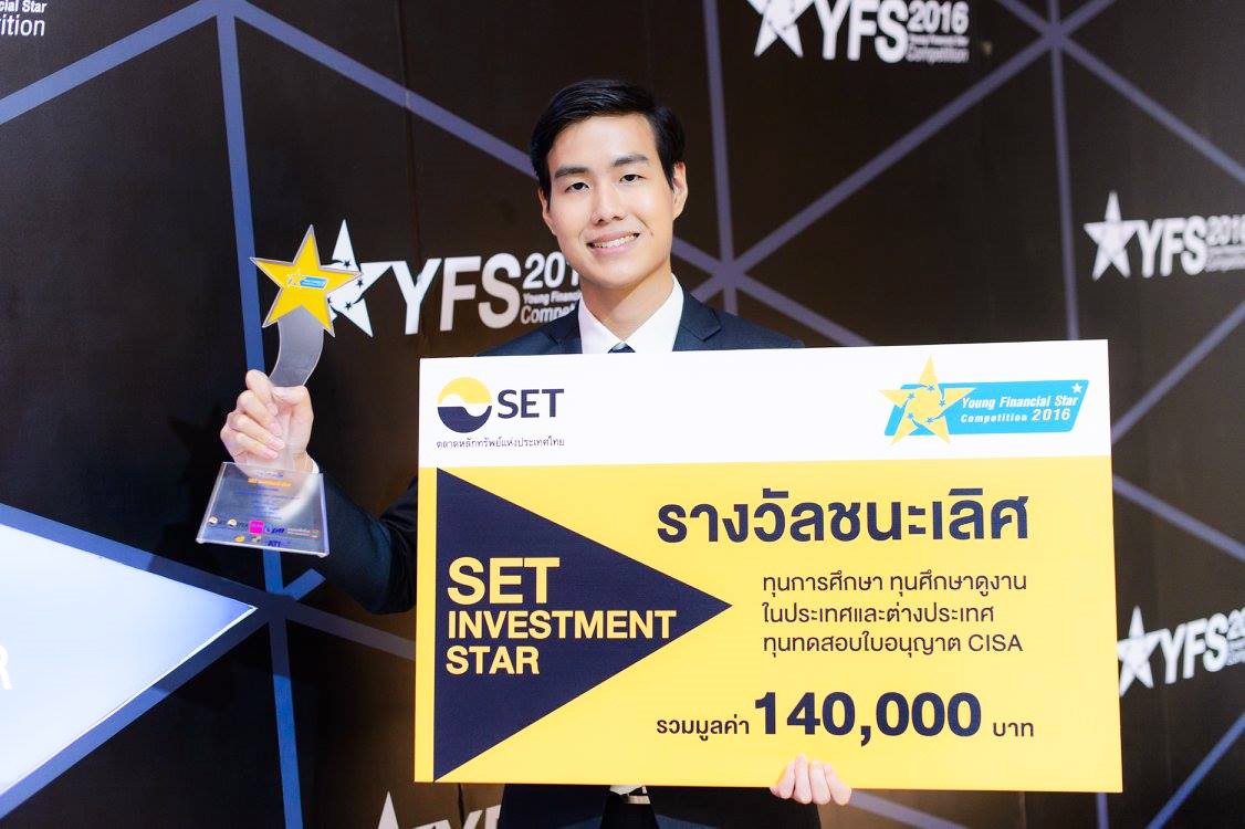 สิ่งเหล่านี้คงพอสะท้อนให้เราได้เห็นว่า หนทางแห่งความสำเร็จครั้งนี้ ไม่ได้เกิดขึ้นแบบฉับพลันทันใด แต่ได้มาจากความตั้งใจและใช้เวลากับมันมากๆ จึงไม่แปลกเลยที่ความเพียรพยายาม และอุตสาหะดังกล่าว จะทำให้น้องนัน ไปคว้าแชมป์ จาก เวทีการประกวด Young Financial Star (YFS) ประเทศไทย ในปี 2016 มาได้ โดยรางวัลครั้งนี้เป็นเพียงจุดเริ่มต้นก้าวแรกของเขาเท่านั้น เพราะน้องนันตั้งเป้าที่จะเดินหน้าสู่เส้นทางอาชีพสายการเงินการลงทุน และแม้ว่าหลายคนอาจจะเจ็บหนักจากการลงทุนในหุ้น แต่เคล็ดลับสำคัญสำหรับหนุ่มไฟแรงคนนี้มีอยู่ว่า “อะไรที่ทำเงินนั้นยากหมด แต่ไม่ยากเกินความพยายาม” น้องนัน กล่าวทิ้งท้าย ![]()