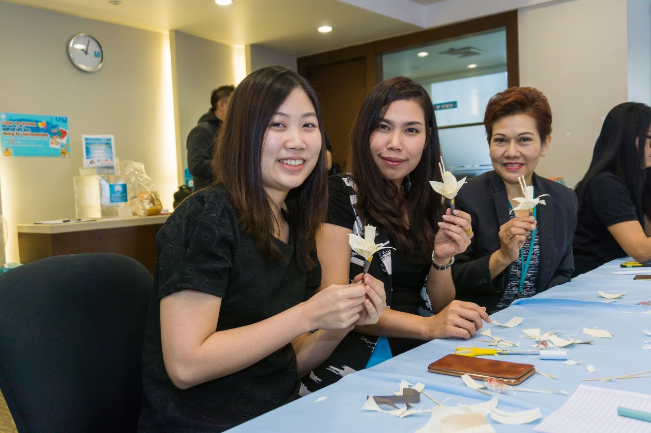 กรุงเทพฯ 15 มิถุนายน 2560 : บริษัท ไทยสมุทรประกันชีวิต จำกัด (มหาชน) นำโดยคุณนุสรา (อัสสกุล) บัญญัติปิยพจน์ กรรมการผู้จัดการ คุณสุวรรณ อุดมเฉลิมเดช ผู้ช่วยกรรมการผู้จัดการ พร้อมผู้บริหาร และทีม OCEAN LIFE ไทยสมุทรจิตอาสา ร่วมทำความดีด้วยหัวใจ ด้วยการร่วมกันประดิษฐ์ดอกไม้จันทน์ เพื่อส่งต่อให้วัดในเขตกรุงเทพมหานครใช้ในพระราชพิธีถวายพระเพลิงพระบรมศพพระบาทสมเด็จพระปรมินทรมหาภูมิพลอดุลยเดช ซึ่งกิจกรรมครั้งนี้เป็นหนึ่งในกิจกรรม 9 ความดีที่ OCEAN LIFE ไทยสมุทรฯ ได้จัดขึ้นเพื่อรำลึกในพระมหากรุณาธิคุณของพระองค์ท่านที่มีต่อปวงชนชาวไทย ![]()
