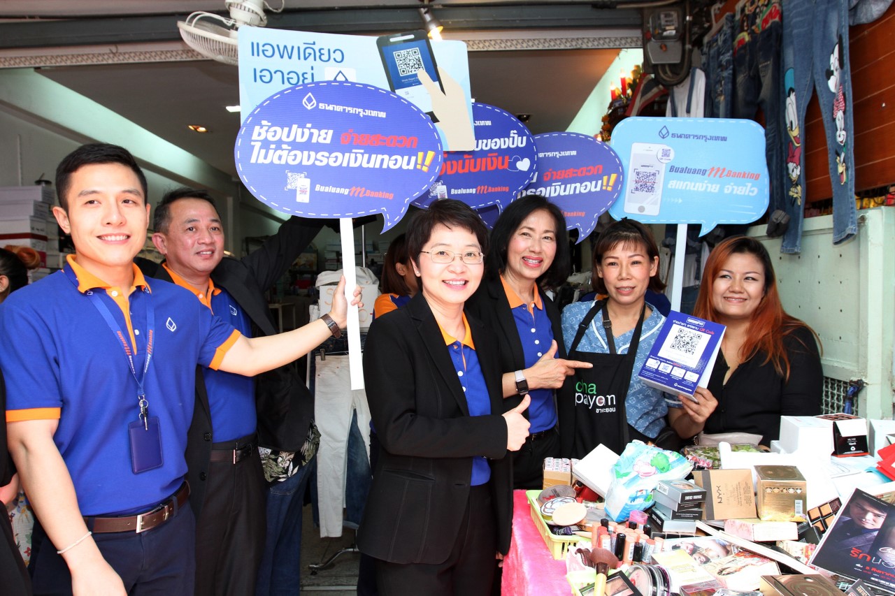 8 กันยายน 2560 : ปรัศนี อุยยามะพันธุ์ ผู้ช่วยผู้จัดการใหญ่ และ พจณี คงคาลัย ผู้ช่วยผู้จัดการใหญ่ ธนาคารกรุงเทพ จำกัด (มหาชน) พร้อมพนักงานลงพื้นที่ตลาด “ซอยละลายทรัพย์” ถนนสีลม เพื่อโปรโมทบริการรับชำระเงินด้วยคิวอาร์โค้ดผ่านพร้อมเพย์ ร่วมขับเคลื่อนประเทศไทยสู่สังคมไร้เงินสดตามนโยบายรัฐบาล โดยแนะนำแอปพลิเคชัน “บัวหลวง เอ็มแบงก์กิ้ง” ที่สะดวกยิ่งกว่า ทั้งสร้างและสแกน QR Code สำหรับการโอนเงินพร้อมเพย์ได้เบ็ดเสร็จในแอปพลิเคชันเดียว พร้อมโปรโมชั่นพิเศษ