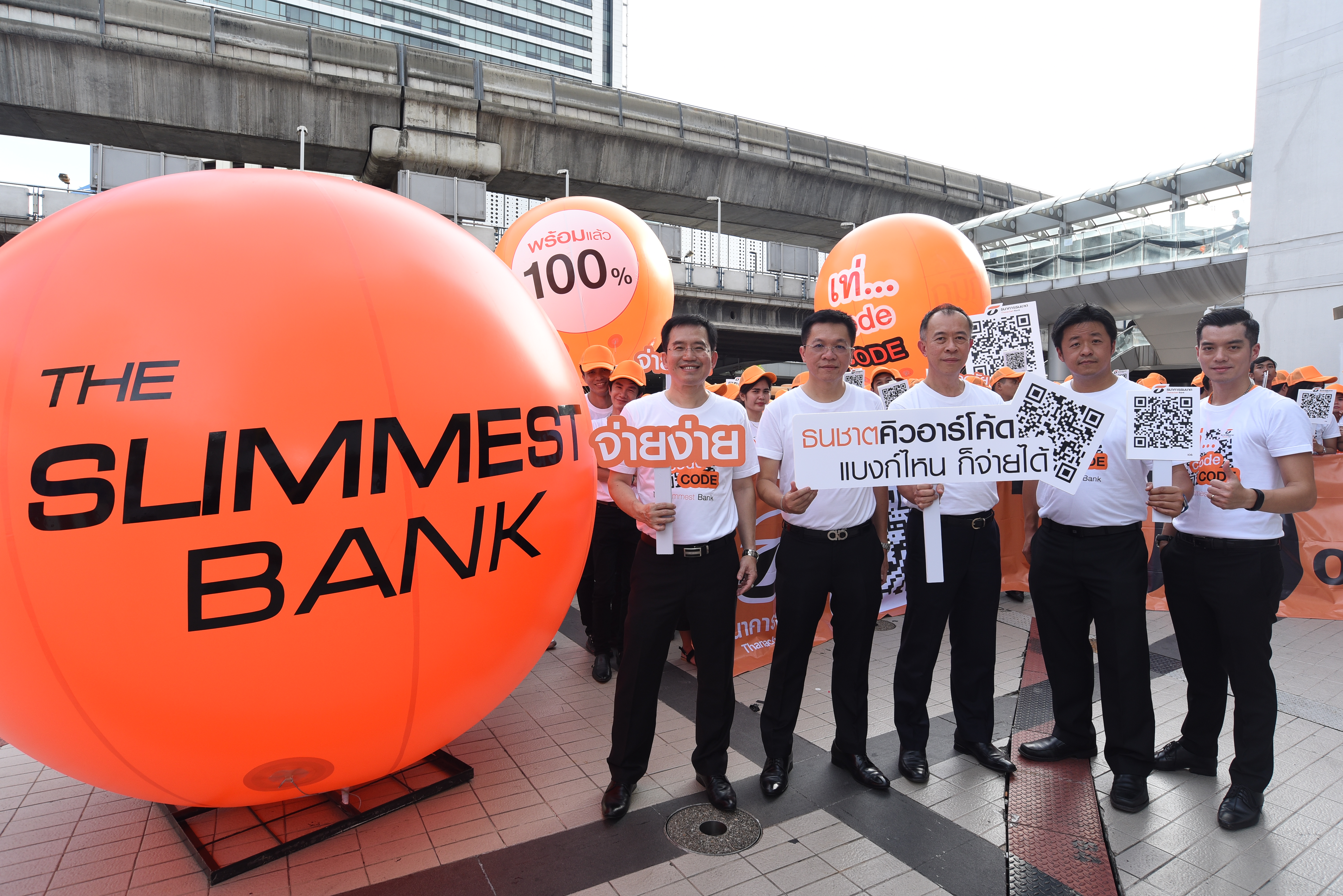 11 กันยายน 2560 : ดร.สุทัต จิตมั่นคงสุข (คนกลาง) รองกรรมการผู้จัดการ สายงานดิจิทัลและเทคโนโลยีสารสนเทศ ธนาคารธนชาต จำกัด (มหาชน) พร้อมคณะผู้บริหารประกาศความพร้อมที่จะให้บริการรับชำระเงินด้วยเทคโนโลยี QR Code ซึ่งเป็นนวัตกรรม The Slimmest Bank นวัตกรรมการชำระเงินรูปแบบใหม่ที่บางที่สุดของธนชาต ด้วยวิธีชำระเงินผ่านการสแกนด้วยโทรศัพท์มือถือ ทำให้ใช้ชีวิตได้ง่ายขึ้น โดยเริ่มนำร่องให้บริการในศูนย์การค้า เอ็มบีเค เซ็นเตอร์ ![]()