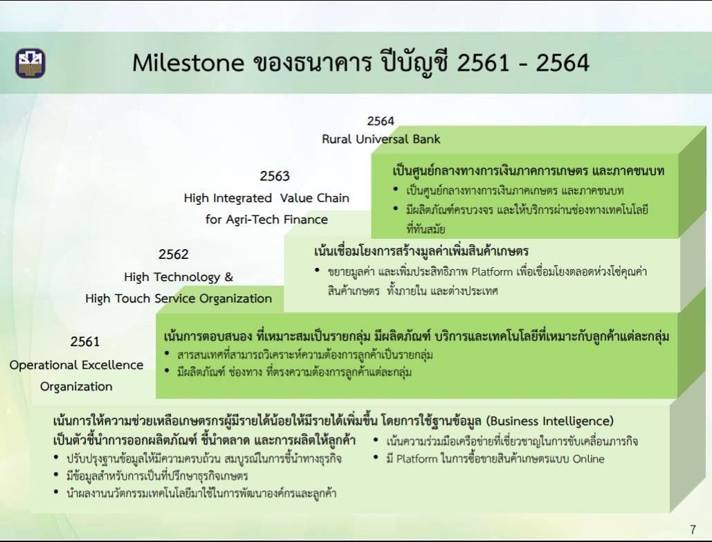 “ธ.ก.ส. กำหนดวิสัยทัศน์ พันธกิจและกรอบความยั่งยืน ที่มุ่งเน้นการดูแลลูกค้า ชุมชนและองค์กรเพื่อให้สอดคล้อง กับทิศทางการพัฒนาประเทศและเป้าหมายการพัฒนาที่ยั่งยืน(SDGs) สอดรับกับวิสัยทัศน์ พันธกิจและกรอบความยั่งยืนใหม่ โดยยึดถือแนวทาง 4 เป้าประสงค์ 5 ยุทธศาสตร์ ค่านิยมและความสามารถพิเศษองค์กร ขยายการลงทุนด้านเทคโนโลยีสารสนเทศ เพื่อเพิ่มประสิทธิภาพในการทำงานและขีดความสามารถในการแข่งขันของธนาคาร ภายใต้กรอบนโยบายการขับเคลื่อนองค์กรให้บรรลุผลสำเร็จตามยุทธศาสตร์ที่ได้กำหนดไว้” นายอภิรมย์กล่าว