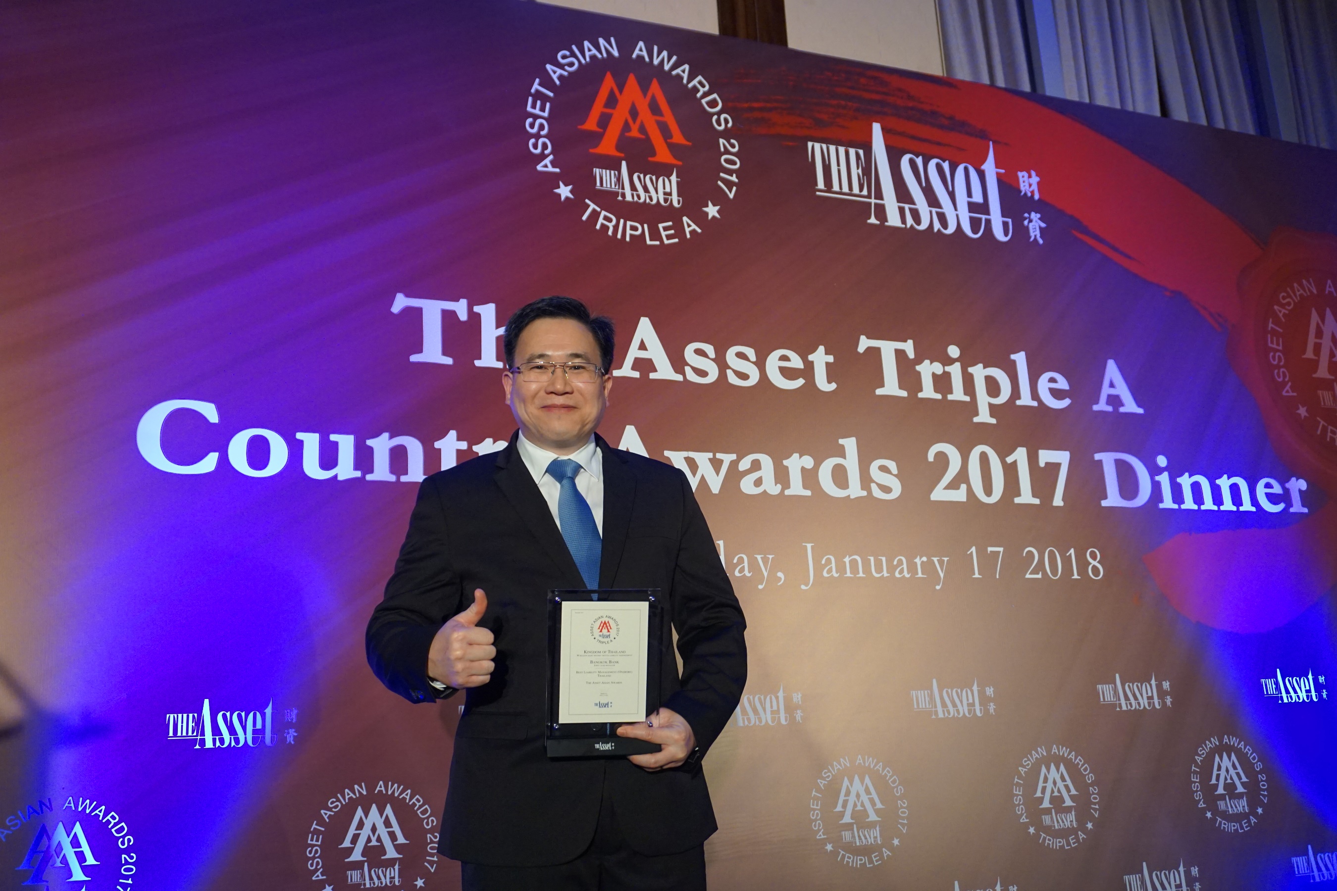 22 มกราคม 2561 : นายคณิต สีห์ ผู้ช่วยผู้จัดการใหญ่ สายลูกค้าธุรกิจรายใหญ่ นางศิริวรรณ สุรโกมล เจ้าหน้าที่บริหาร ระดับ Senior Vice President ผู้จัดการ ธุรกิจลูกค้าต่างประเทศ 1 นายมนตรี อุปถัมภากุล เจ้าหน้าที่บริหาร ระดับ Vice President ฝ่ายทุนธนกิจ ธนาคารกรุงเทพ จำกัด (มหาชน) เป็นผู้แทนธนาคารรับมอบรางวัลเกียรติยศจากนิตยสารดิแอสเส็ท (The Asset) ซึ่งเป็นนิตยสารการเงินชั้นนำแห่งเอเชีย ในงาน The Asset Triple A Country Awards 2017 โดยในครั้งนี้ธนาคารกรุงเทพได้รับการประกาศยกย่องใน 4 รางวัลยอดเยี่ยม