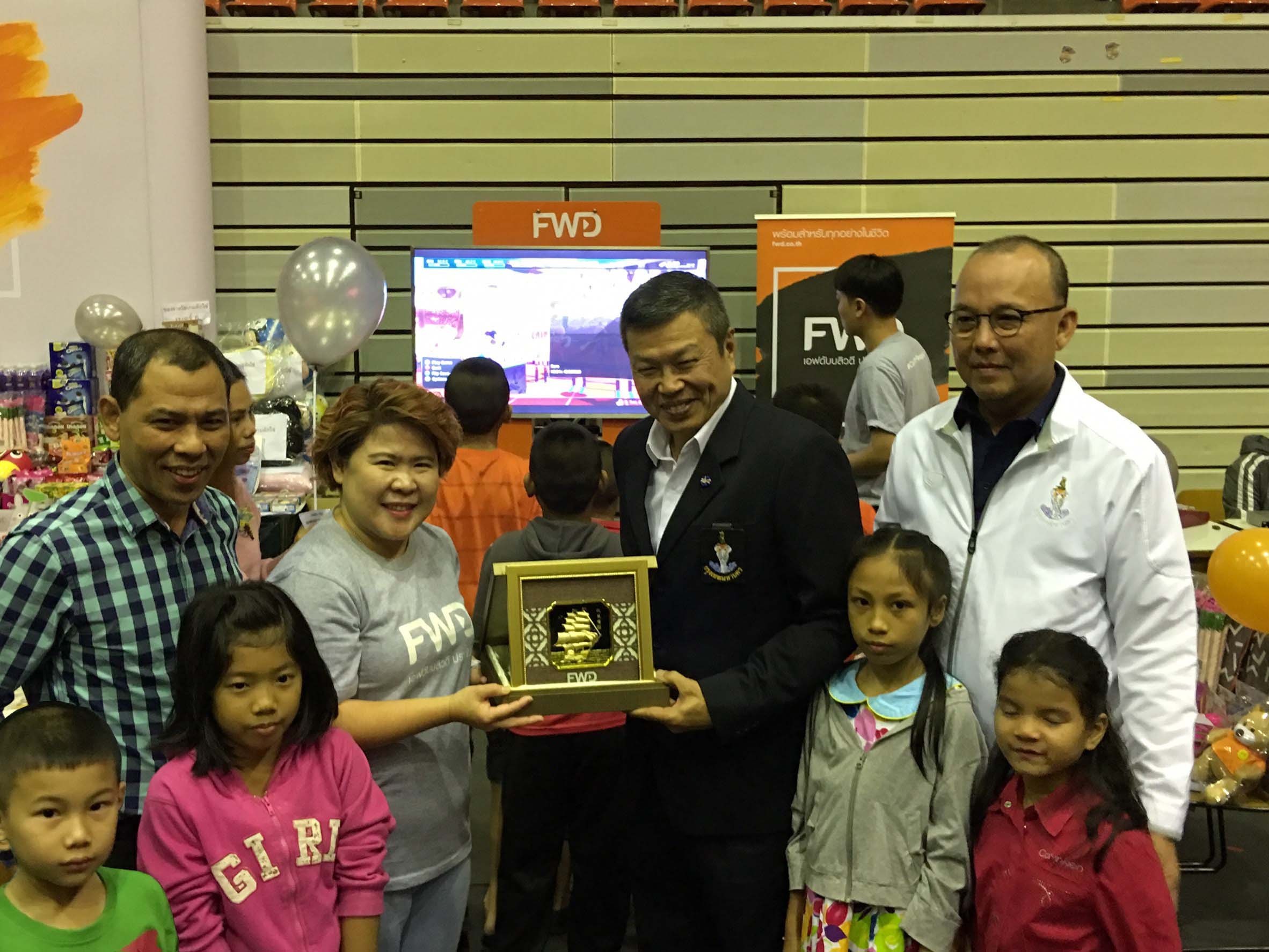 24 มกราคม 2561 : ศุลีพร ยงวิทิตสถิต (กลางซ้าย) ผู้อำนวยการสื่อสารองค์กรและกิจกรรมทางการตลาด บริษัท เอฟดับบลิวดี ประกันชีวิต จำกัด (มหาชน) พร้อมด้วยพนักงานจิตอาสา ร่วมจัดกิจกรรมงานวันเด็กกับศูนย์เยาวชนกรุงเทพมหานคร โดยได้รับเกียรติจาก พล.ต.ท.โท ชินทัต มีศุข (กลางขวา) รองผู้ว่าฯ กรุงเทพมหานคร ประธานในพิธี พร้อมเยี่ยมชมกิจกรรมภายในบูธเอฟดับบลิวดี ภายในงานมีน้องๆ ให้ความสนใจมาร่วมกับกิจกรรมที่บูธเอฟดับบลิวดีเป็นจำนวนมาก ณ อาคารกีฬาเวสน์ 2 ศูนย์เยาวชนกรุงเทพมหานคร (ไทย – ญี่ปุ่น) ![]()