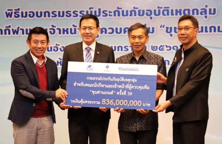 26 มกราคม 2561 : สมาคมประกันชีวิตไทย ร่วมสนับสนุนกีฬาเยาวชนขุนด่านเกมส์ ด้วยการมอบกรมธรรม์ประกันภัยกลุ่มสำหรับคณะนักเรียนและเจ้าหน้าที่ผู้ควบคุมทีม “ขุนด่านเกมส์” ครั้งที่ 39 จังหวัดนครนายก วงเงินเอาประกันภัย 836 ล้านบาท โดยมี บัณฑิต เจียมอนุกูลกิจ อุปนายกฝ่ายบริหาร ร่วมส่งมอบต่อ ดร.สุทธิพล ทวีชัยการ เลขาธิการคณะกรรมการกำกับและส่งเสริมธุรกิจประกันภัย (คปภ.) และ ณัฐพงศ์ ศิริชนะ ผู้ว่าราชการจังหวัดนครนายก ณ สำนักงาน คปภ. เมื่อวันที่ 23 มกราคม 2561 ![]()