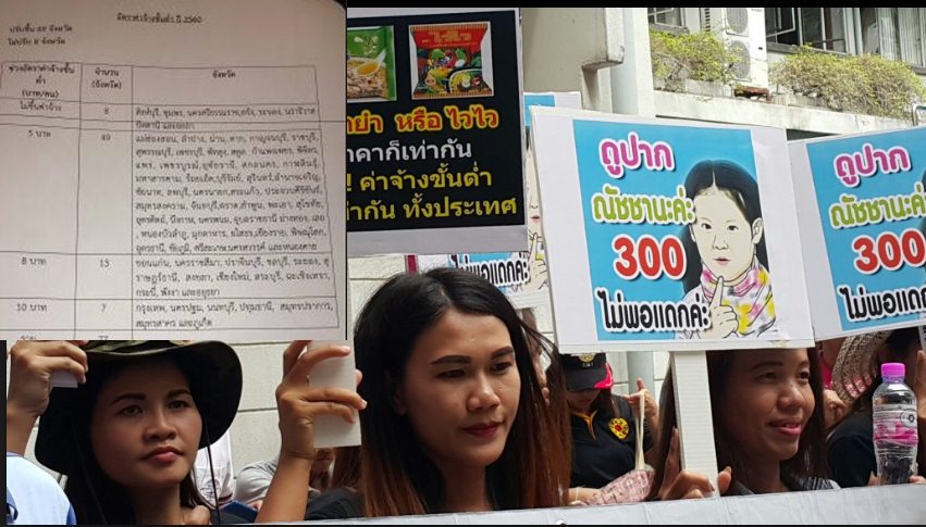 30 มกราคม 2561 : ณัฐพร จาตุศรีพิทักษ์ ที่ปรึกษารัฐมนตรีประจำสำนักนายกรัฐมนตรี เปิดเผยว่า ที่ประชุมคณะรัฐมนตรี(ครม.) วันนี้มีมติรับทราบการกำหนดอัตราค่าจ้างขั้นต่ำตามมติคณะกรรมการค่าจ้าง โดยในเอกสารการประชุมระบุว่าจะมีการปรับขึ้น 8-20 บาท/วัน มาที่ 308-330 บาท เริ่มมีผลตั้งแต่ 1 เม.ย.61 และมอบหมายหน่วยงานที่เกี่ยวข้อง เช่น กระทรวงการคลัง กระทรวงพาณิชย์ และกระทรวงอุตสาหกรรม ดำเนินการตามมาตรการเพื่อลดผลกระทบจากการปรับอัตราค่าจ้างขั้นต่ำต่อไป ![]()