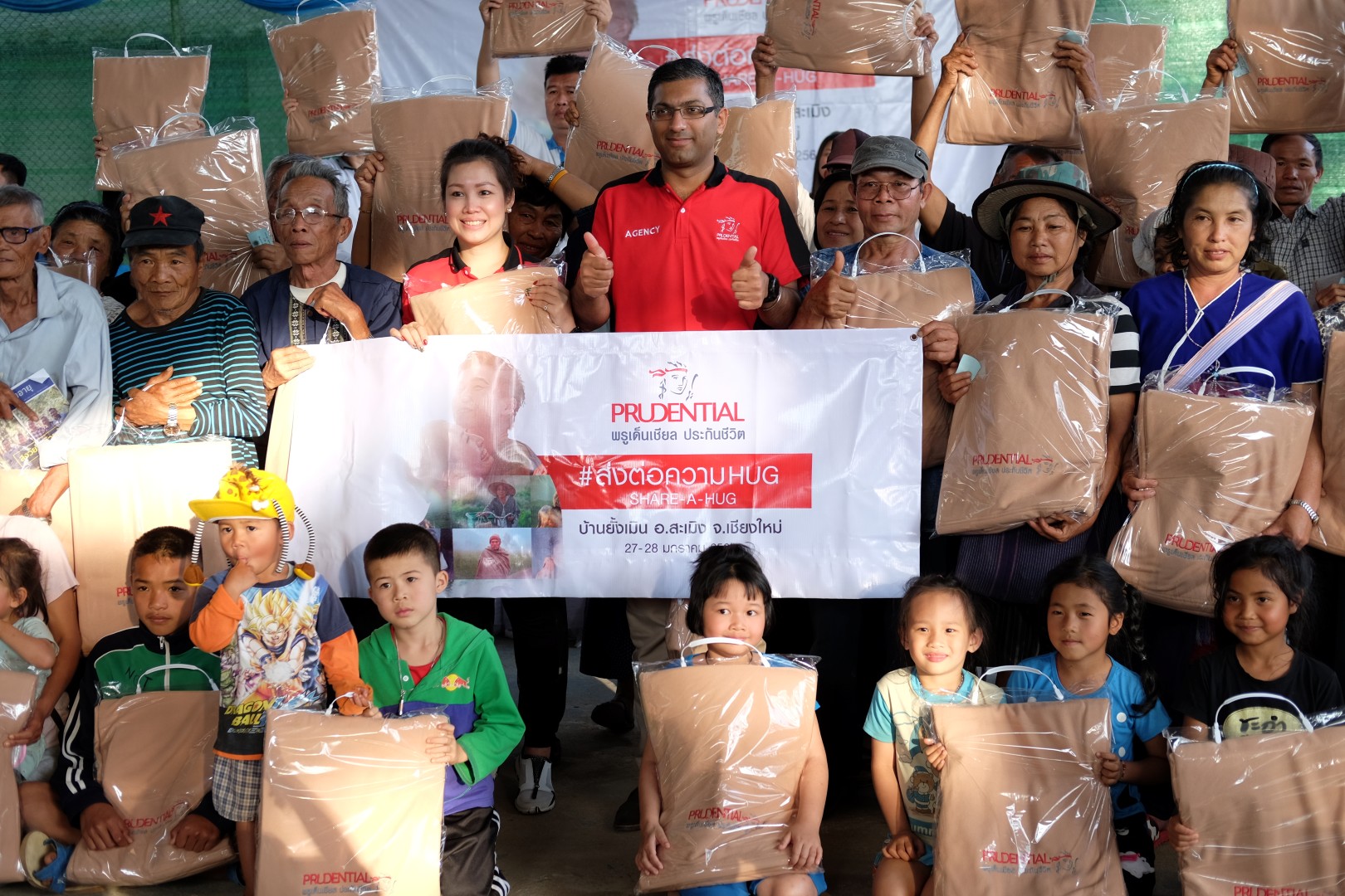 สำหรับผ้าห่มที่นำมามอบให้แก่ชาวบ้านในครั้งนี้ ได้มาจากยอดเงินบริจาคที่ร่วมสมทบทุนในแคมเปญ “#ส่งต่อความ HUG” ที่จัดขึ้นเมื่อปลายปีที่แล้ว เป็นแคมเปญที่บริษัทฯ ได้ขอเชิญชวนมาร่วมโพสต์รูปภาพกอดกับเพื่อน หรือคนที่คุณรัก ผ่านทาง Facebook Prudential Thailand โดยภาพแต่ละภาพที่โพสต์เข้ามาจะมียอดบริจาคเท่ากับ 10 บาท ซึ่งบริษัทฯ จะร่วมสมทบทุนเพื่อจัดซื้อผ้าห่มเพื่อช่วยเหลือผู้สูงอายุที่ประสบภัยหนาวในครั้งนี้ ![]()