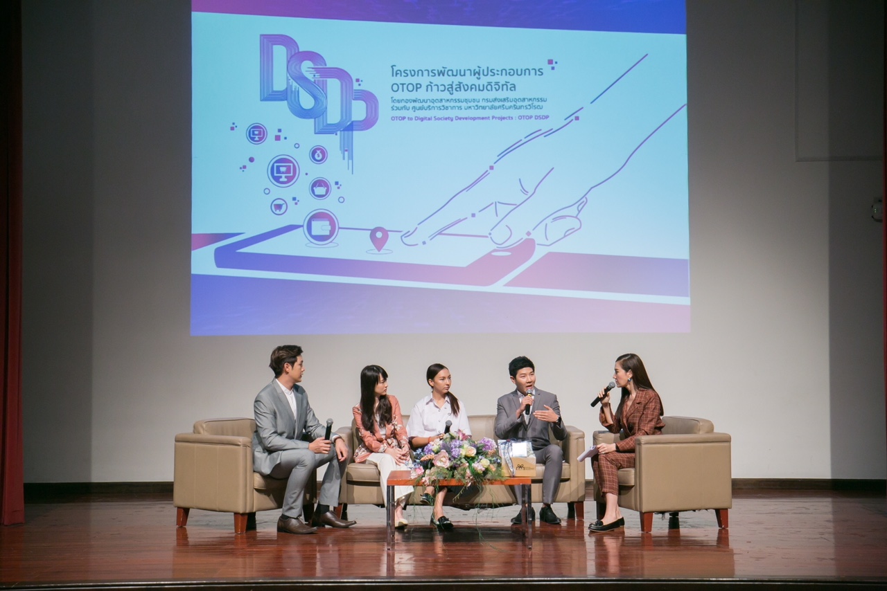 ทั้งนี้ ภายในงานมีดารา นักแสดง ศิษย์เก่า และศิษย์ปัจจุบัน มหาวิทยาลัยศรีนครินทร์วิโรฒ และนักแสดงรับเชิญพิเศษ มาร่วมเสวนาพิเศษในหัวข้อ “OTOP กับก้าวสู่สังคมดิจิทัล” ได้แก่ คุณแอมป์ พีรวัศ กุลนันท์วัฒน์ เจ้าของร้านชิเซน บะหมี่เส้นสด , คุณนูนู่ เจ้าของแบรนด์ MERCI , คาริสา สปริงเก็ตต์ และซีซีน ภัสธรากรณ์ บุษราคัมวดี พร้อมทั้งเชิญชวนให้ผู้ประกอบการ OTOP สมัครเข้าร่วมโครงการ โดยผู้สมัครต้องมีคุณสมบัติในการเป็นผู้ประกอบการ OTOP ไม่ต่ากว่าระดับ 3 ดาว ที่ดาเนินกิจการในสาขาต่าง ๆ ประกอบด้วย ผ้าและเครื่องแต่งกาย ของใช้ ของประดับตกแต่ง และของที่ราลึก สมุนไพรที่ไม่ใช่อาหาร อาหาร-เครื่องดื่ม และ