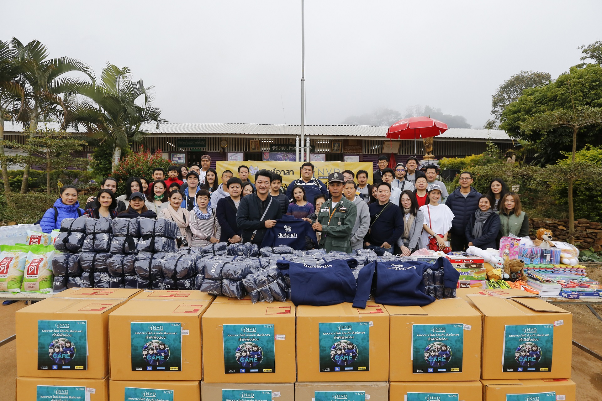 14 กุมภาพันธ์ 2561 : ศรศักดิ์ สมวัฒนา ประธานเจ้าหน้าที่บริหาร บริษัท เนอวานา ไดอิ จำกัด (มหาชน) หรือ NVD (ที่ 7 จากซ้าย) พร้อมด้วยคณะผู้บริหาร ทีมงานสิงห์ อาสา และลูกบ้านในโครงการของเนอวานา ร่วมส่งมอบเครื่องนุ่งห่ม เสื้อกันหนาว อุปกรณ์การเรียน ทุนการศึกษา และเครื่องอุปโภคบริโภค แก่เด็กนักเรียนชาวเขาที่มีความเป็นอยู่ลำบาก และขาดแคลนทุนทรัพย์ ในโครงการ “NIRVANA Family ทำดีเพื่อน้อง” ณ โรงเรียนตำรวจตระเวนชายแดนเทคนิคดุสิต บ้านห้วยส้านลีซอ ตำบลห้วยชมพู อำเภอเมือง จังหวัดเชียงราย เมื่อเร็วๆ นี้ ![]()