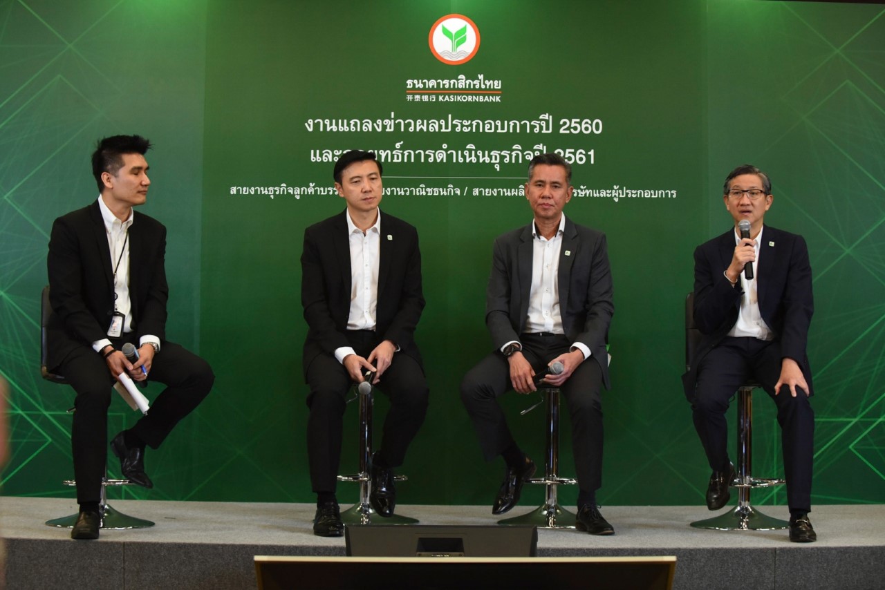 21 กุมภาพันธ์ 2561 : สุวัฒน์ เตชะวัฒนวรรณา (กลาง) รองกรรมการผู้จัดการ, ภานพ อังศุสิงห์ (ซ้าย) ผู้บริหารสายงานวาณิชธนกิจ และ ศีลวัต สันติวิสัฎฐ์ (ขวา) รองกรรมการผู้จัดการ ธนาคารกสิกรไทย แถลงผลประกอบการปี 2560 และกลยุทธ์ในปี 2561 สายงานธุรกิจลูกค้าบรรษัท สายงานวาณิชธนกิจ และสายงานผลิตภัณฑ์บรรษัทและผู้ประกอบการ