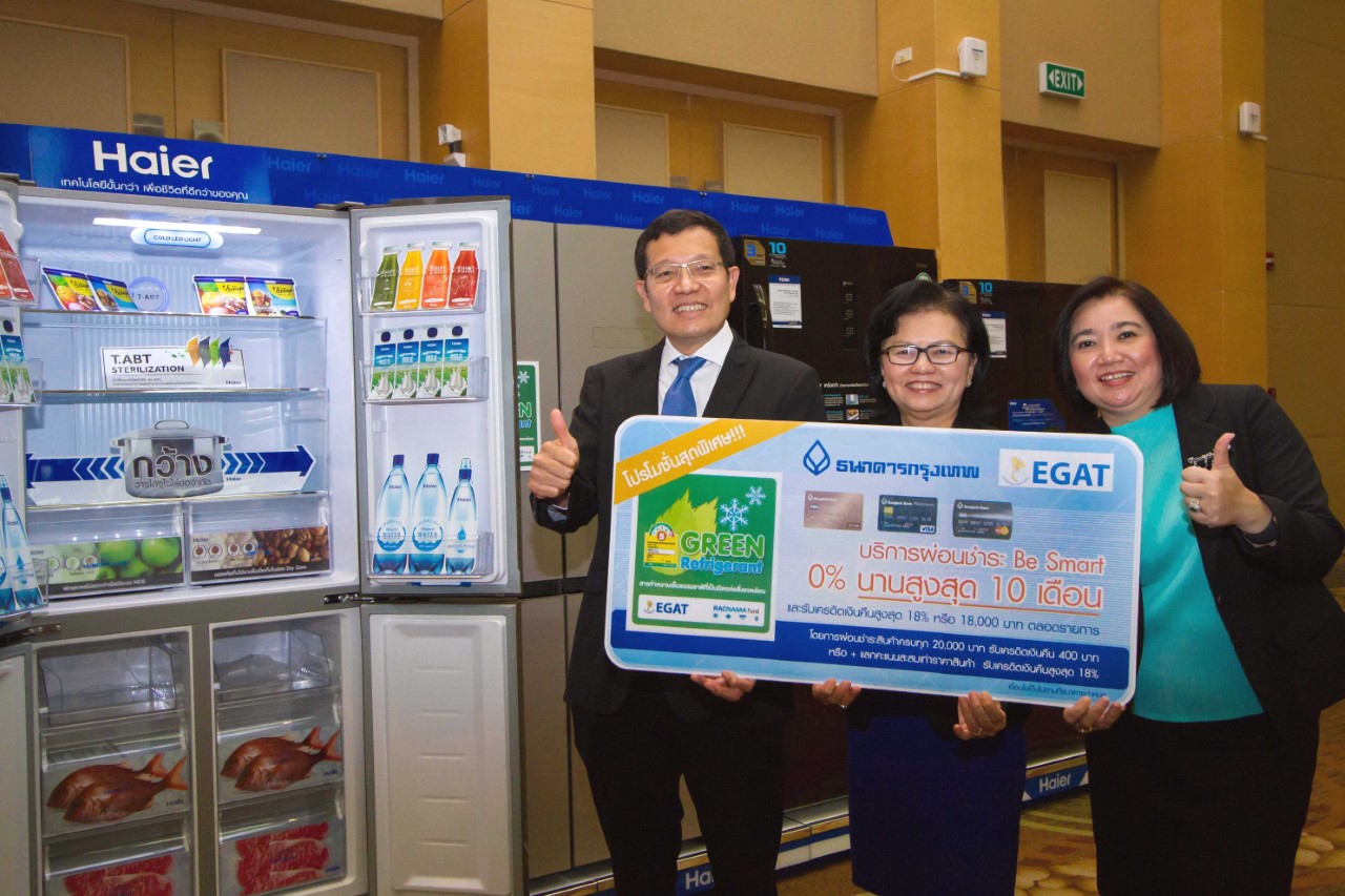 ในโครงการส่งเสริมการขายผลิตภัณฑ์ตู้เย็นที่ใช้สารทำความเย็นธรรมชาติที่เป็นมิตรต่อสิ่งแวดล้อม (Thailand RAC NAMA) มอบให้แก่ผู้ถือบัตรเครดิตประเภทวีซ่า และมาสเตอร์การ์ด ที่ออกโดยธนาคารกรุงเทพทุกประเภท ให้สามารถผ่อนชำระสินค้าที่ร่วมรายการภายใต้ตราสัญลักษณ์ Green Refrigerant ผ่านบริการผ่อนชำระ Be Smart 0% นานสูงสุดถึง 10 เดือน และรับเครดิตเงินคืนสูงสุด 18% หรือ 18,000 บาท ตลอดรายการ