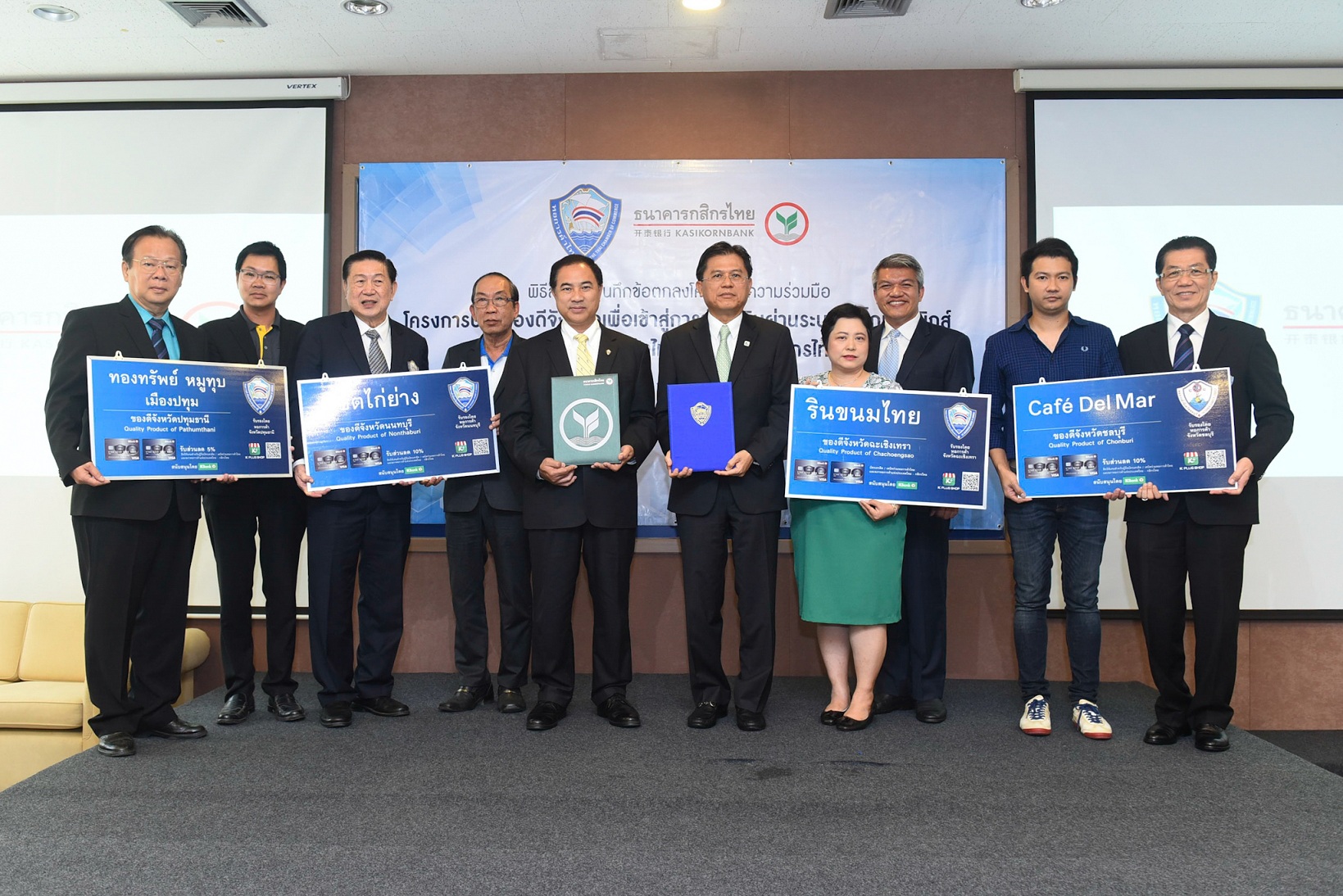 โดยธนาคารกสิกรไทยดำเนินการติดตั้งระบบรับชำระด้วย QR Code มาตรฐาน ให้แก่ร้านค้าสมาชิกหอการค้าไทยที่เข้าร่วมโครงการป้ายของดีจังหวัด ทั่วประเทศ เพื่อให้สามารถรองรับการชำระด้วยการสแกนจาก โมบาย แบงกิ้ง ได้ทุกธนาคาร และรับชำระเงินผ่านคิวอาร์โค้ดของ Alipay และ WeChat Payได้ด้วย อำนวยความสะดวกให้แก่ผู้ซื้อในการชำระเงินที่สะดวกและปลอดภัย