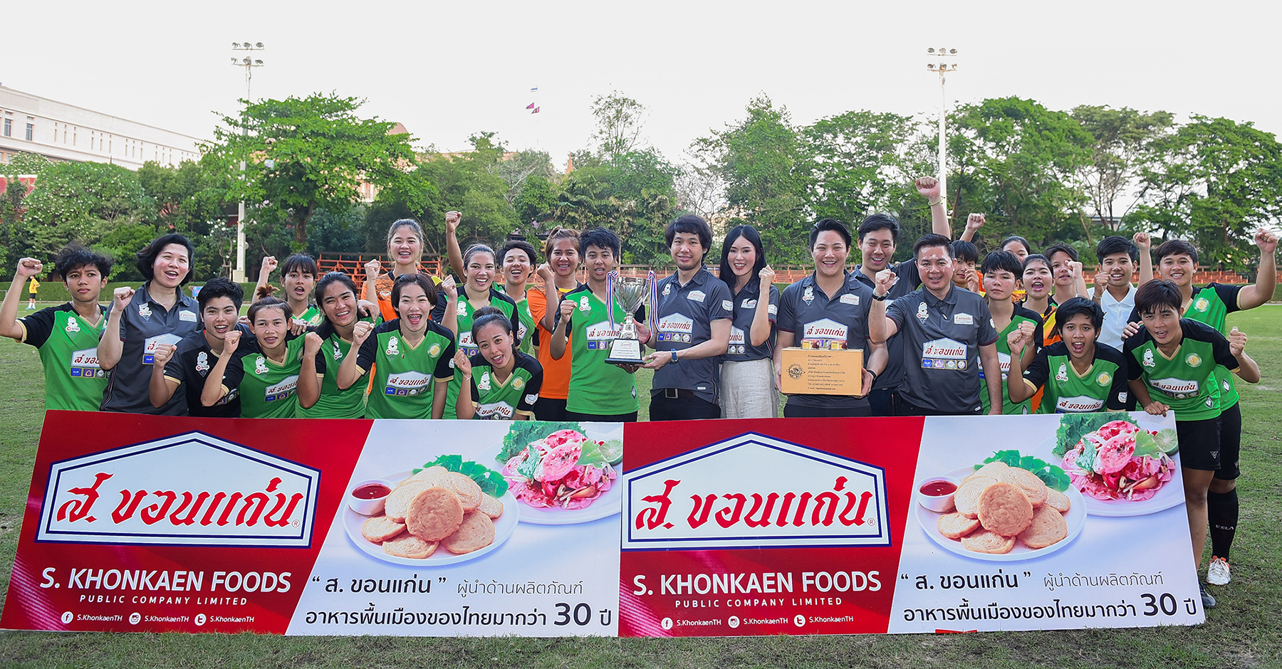 6 มีนาคม 2561 : จรัญพจน์ รุจิราโสภณ ประธานเจ้าหน้าที่สายงานปฎิบัติการการตลาดและการขาย บริษัท ส.ขอนแก่นฟู้ดส์ จำกัด (มหาชน) หรือ SORKON มอบถ้วยรางวัลแก่ทีมผู้ชนะเลิศการแข่งขันฟุตบอลหญิงจากมหาวิทยาลัยเกษตรศาสตร์ในพิธีปิดการแข่งขัน ‘ฟุตบอลสี่เส้า ส.ขอนแก่น ปรียูลีกหญิง ครั้งที่ 2’ ที่มหาวิทยาลัยธุรกิจบัณฑิต เนื่องในโอกาสที่ส.ขอนแก่นฟู้ดส์ได้เล็งเห็นความสำคัญกับการพัฒนากีฬาฟุตบอลหญิงเพื่อให้ก้าวไกลสู่ระดับโลกและสร้างชื่อเสี ยงให้แก่ประเทศชาติต่อไป ![]()