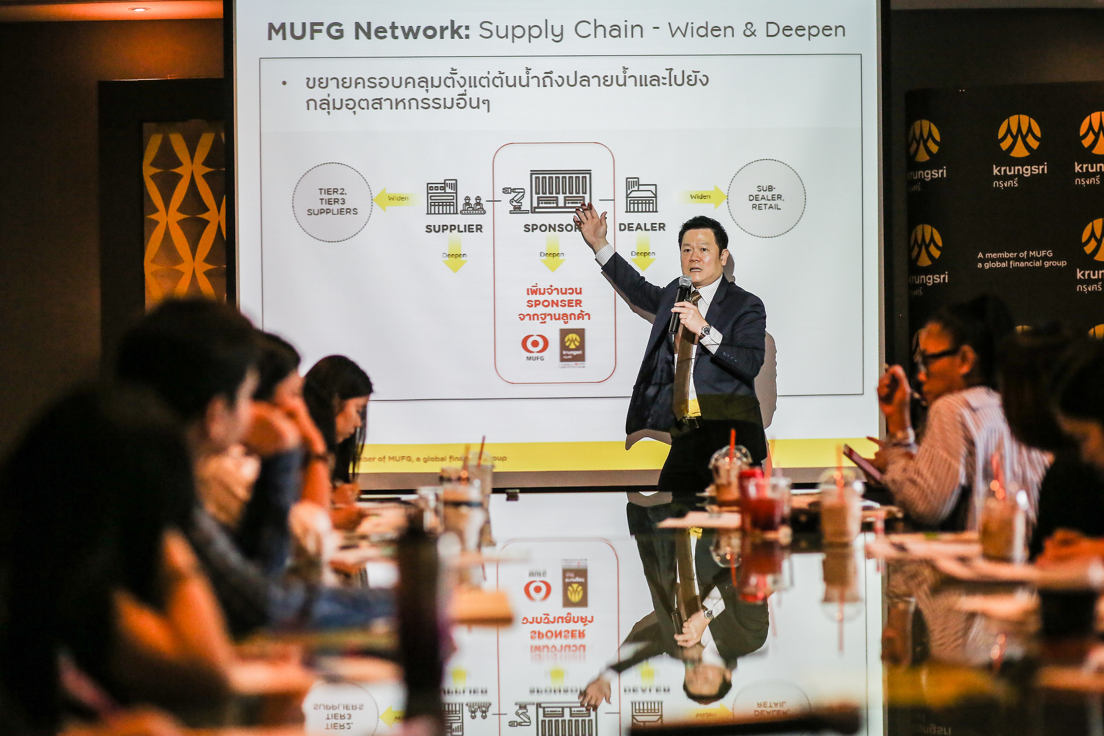อีกทั้งให้บริการที่ครอบคลุมและตอบสนองความต้องการของธุรกิจ SME ได้ดียิ่งขึ้น ทั้งนี้ เพื่อชูศักยภาพเครือข่าย MUFG ธนาคารได้ออกแคมเปญ SME Export 3+2 สำหรับผู้ส่งออกไทยที่มีคู่ค้าต่างประเทศที่เป็นลูกค้าของ MUFG และเลือกใช้กรุงศรีเป็นธนาคารหลักในการรับเงินโอนค่าสินค้าจากคู่ค้า จะได้รับวงเงินสินเชื่อเพื่อการค้าต่างประเทศ ตลอดจนสิทธิพิเศษ ฟรีค่าธรรมเนียมเงินโอนขาเข้าและบริการจัดส่งเอกสารส่งออก”