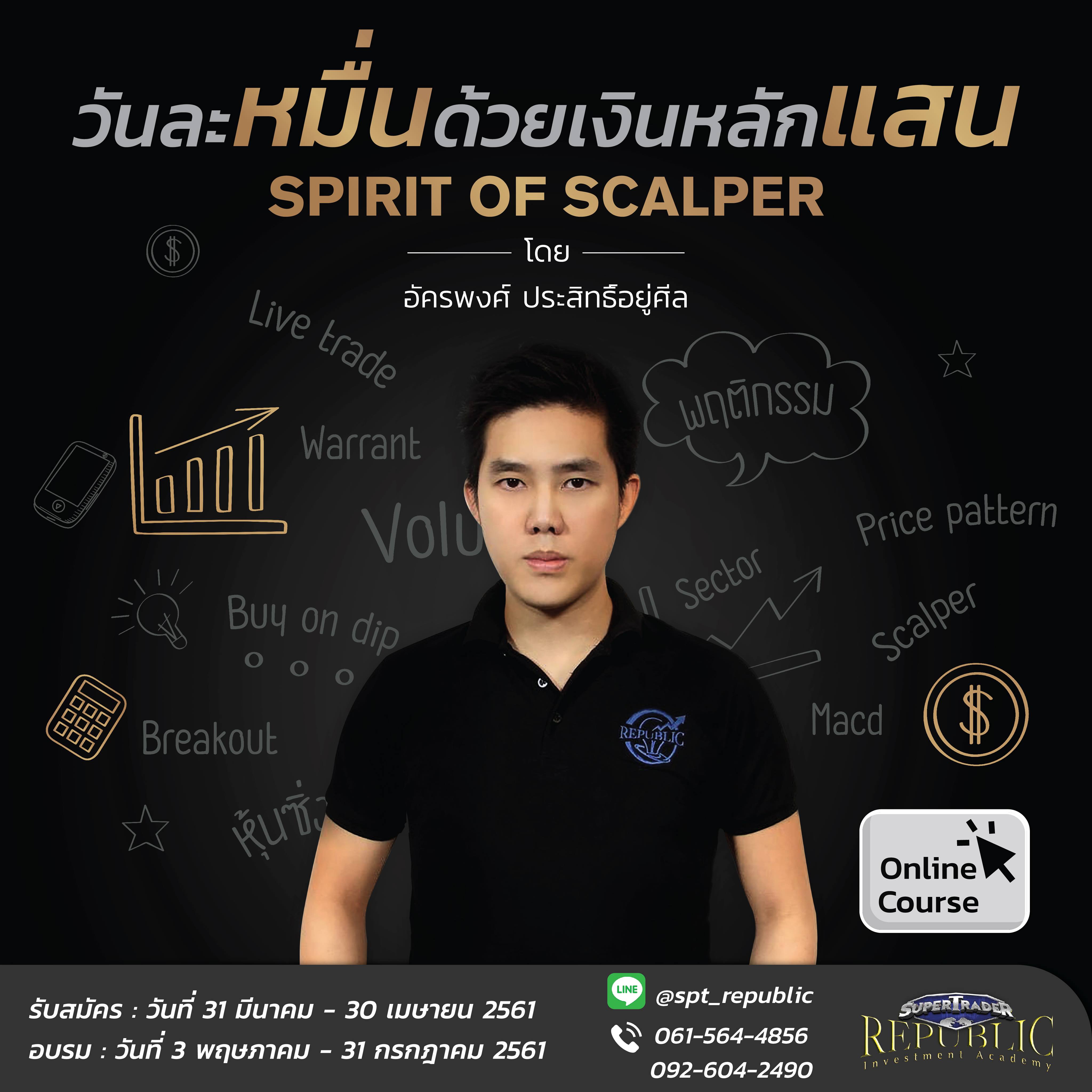 10 เมษายน 2561 : ซุปเปอร์เทรดเดอร์ รีพับบลิค (SPTR) Co-Trading Space แห่งแรกของประเทศไทย พัฒนาไม่หยุดนิ่ง เปิดตัวคอร์สสัมมนาออนไลน์ เอาใจคนไม่มีเวลา ไม่สะดวกในการเดินทาง อยู่ที่ไหนก็สามารถเรียนรู้ได้ กับ ‘SPIRIT OF SCALPER วันละหมื่นด้วยเงินหลักแสน’ โดย ‘โค้ชเจมส์’ อัครพงศ์ ประสิทธิ์อยู่ศีล เทรดเดอร์หนุ่มไฟแรง แต่มากความสามารถ